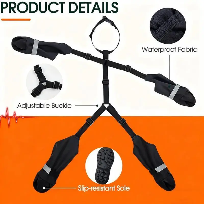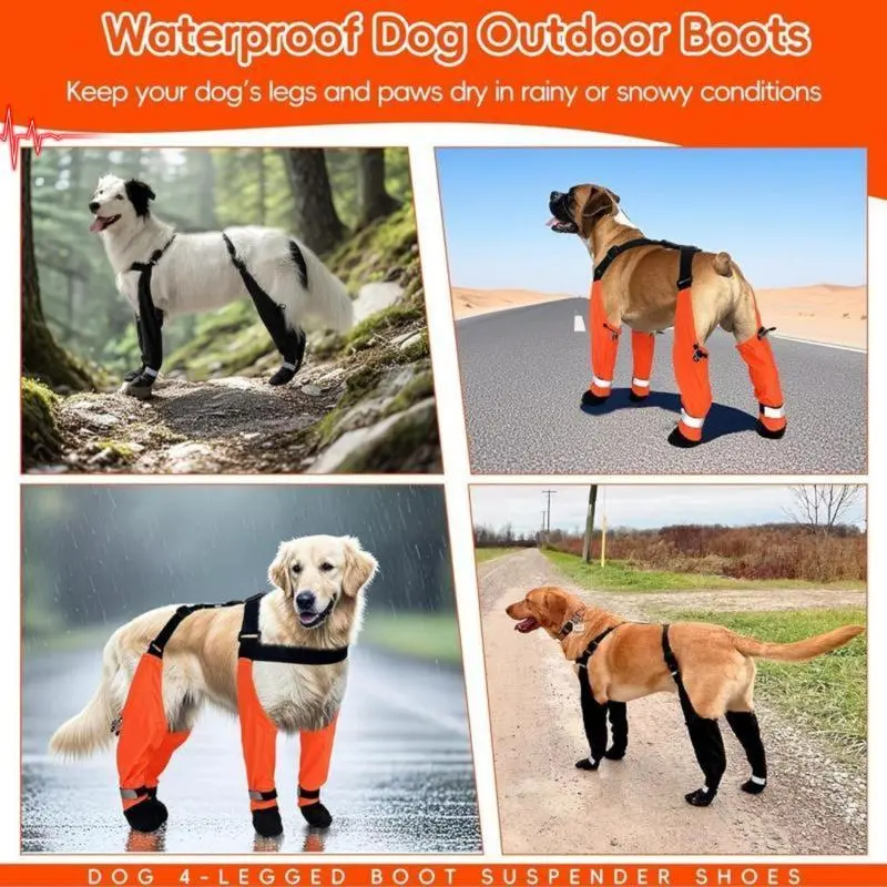 PuppyDog Waterproof Harness Boots - Non-Slip Reflective Paw Protectors With Leg Straps For Walking & Hiking Key Features: Waterproof Material: Crafted with durable waterproof fabric to protect your dog's paws from rain, snow, mud, and moisture. Reflective Elements: Built-in reflective details improve visibility during low-light conditions, ensuring safety during early-morning or nighttime walks. Secure Attachable Straps: Adjustable straps ensure a snug, comfortable fit that prevents the boots from slipping off, even during running or play. Anti-Slip Soles: Equipped with non-slip rubber soles to enhance traction and stability on slippery terrain, perfect for snow, ice, and rainy days. Cold Weather Protection: Designed to shield your dog's paws and lower legs from harsh winter temperatures, keeping them warm and comfortable outdoors. Ideal For: Snowy winter walks Rainy days Outdoor adventures Hiking & trails Protecting injured or sensitive paws Give your dog the comfort and protection they need during winter walks!