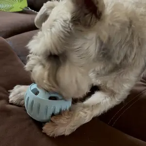 My lab mix pups are obsessed with this toy/treat! They carry the empty one around in hopes someone will put another treat in! Best doggy purchase I’ve ever made!