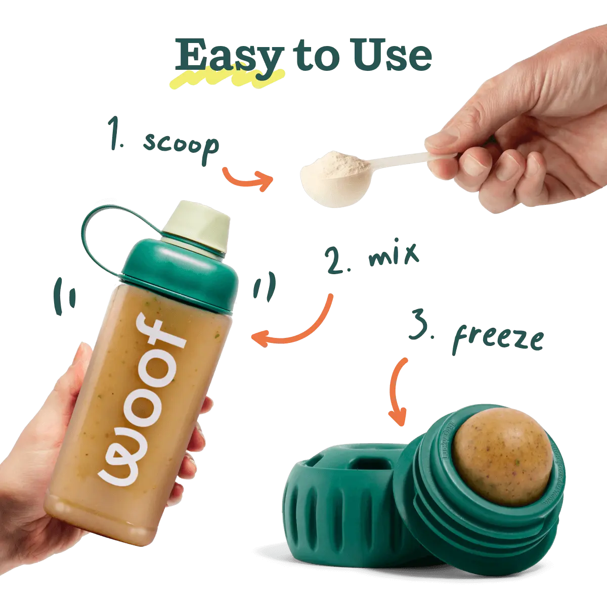 Absolutely love it. It’s a godsend and the fact that it comes with its own shaker the dogs go nuts. They love these treats and they’re so simple to just put in the freezer, especially when they need some time for their head and stimulation and exercise.