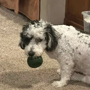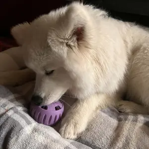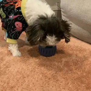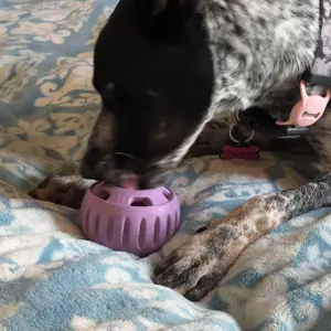 Luna LOVED this! Not only was she busy for thirty minutes with her own she also finished up the small size one her best friend Sushi had been eating. Great new addition to our dog enrichment rotation.