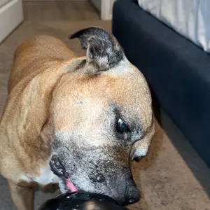 Searching for the indestructible toy for Bailey (2yo 62lbs seek and destroy mode ON). Liked the idea of making her treats for this āreusableā toy. She had massive chunks off within the first hr.