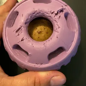 Searching for the indestructible toy for Bailey (2yo 62lbs seek and destroy mode ON). Liked the idea of making her treats for this “reusable” toy. She had massive chunks off within the first hr.