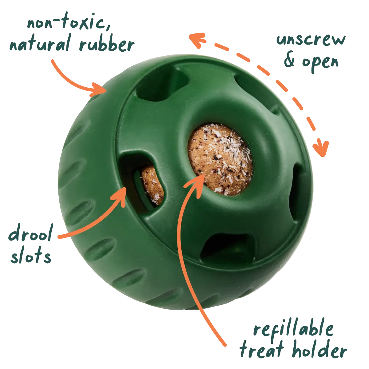 Unfortunately my 10 pound poodle chewed chunks out of the rubber. She only had it for 5-10 minutes. I love the idea of it. She was absolutely obsessed with it. It could have been a fabulous toy for her if it was harder like a kong.