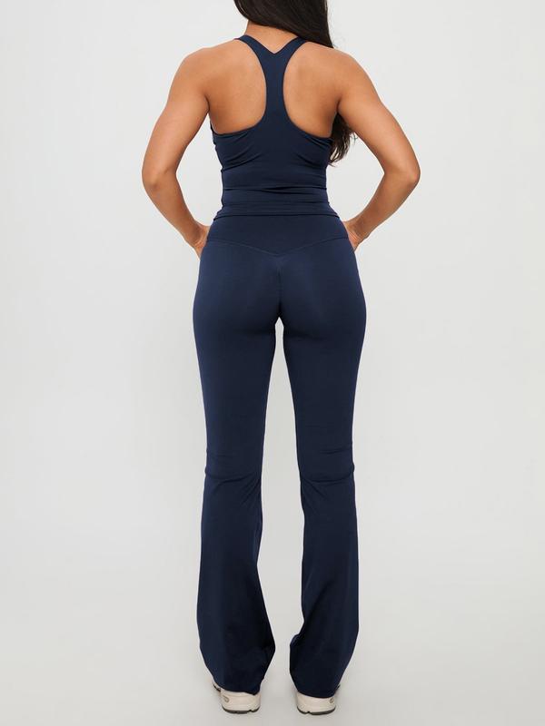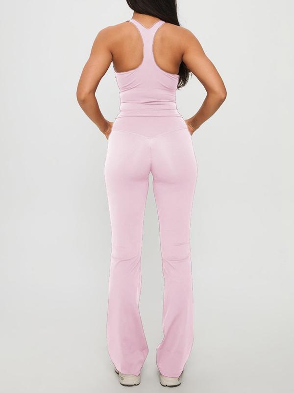Pure Color Casual Sporty Slim Fit Crop Top and Bell Pants Set, High Waist Sleeveless H-Type, Athleisure Wear Set, Fall Fashion Two-Piece Set