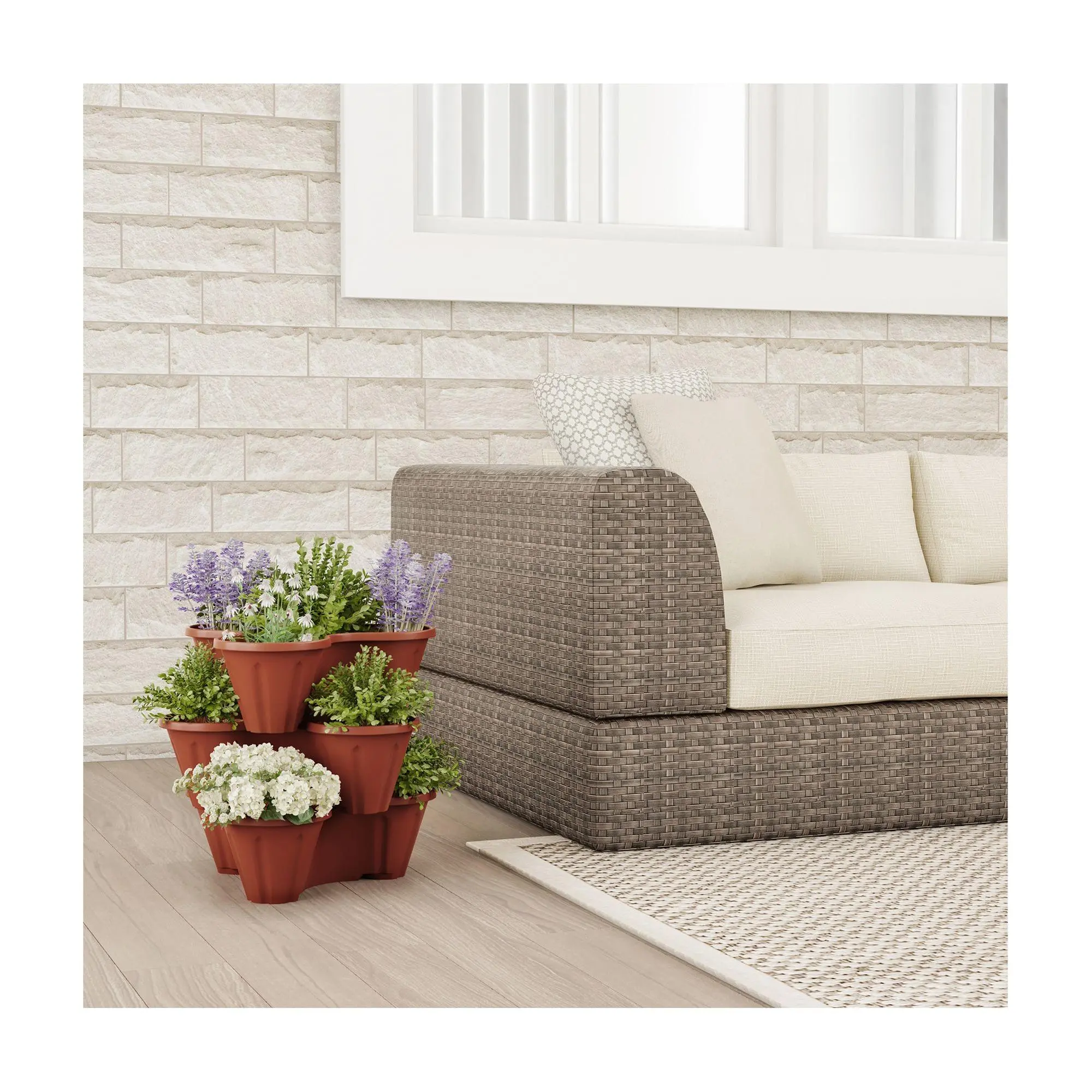 Freshen up a balcony, poolside deck, or porch with this space-saving plant tower, featuring a stacking design that creates a stunning display. From Pure Garden.