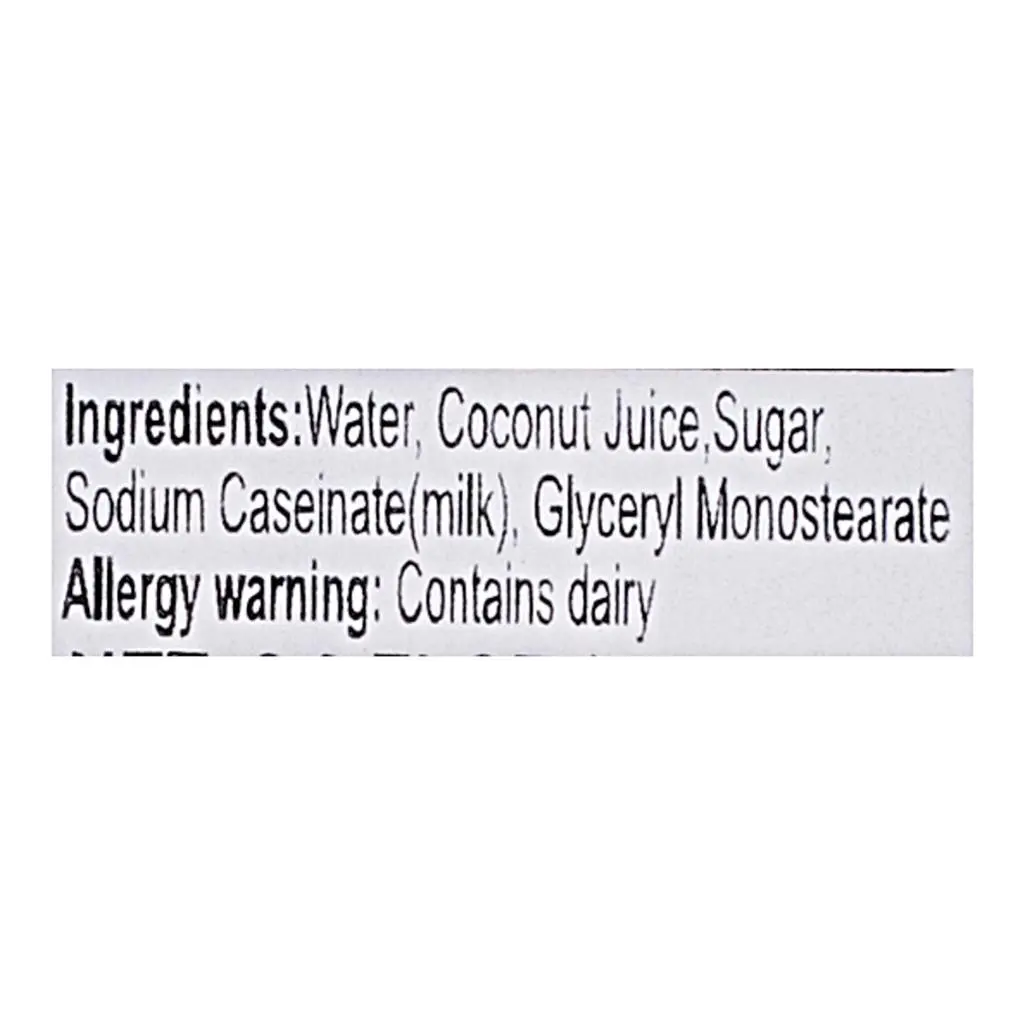 Water, Coconut Juice, Sugar, Sodium Caseinate (milk), Glycertl Monostearate.