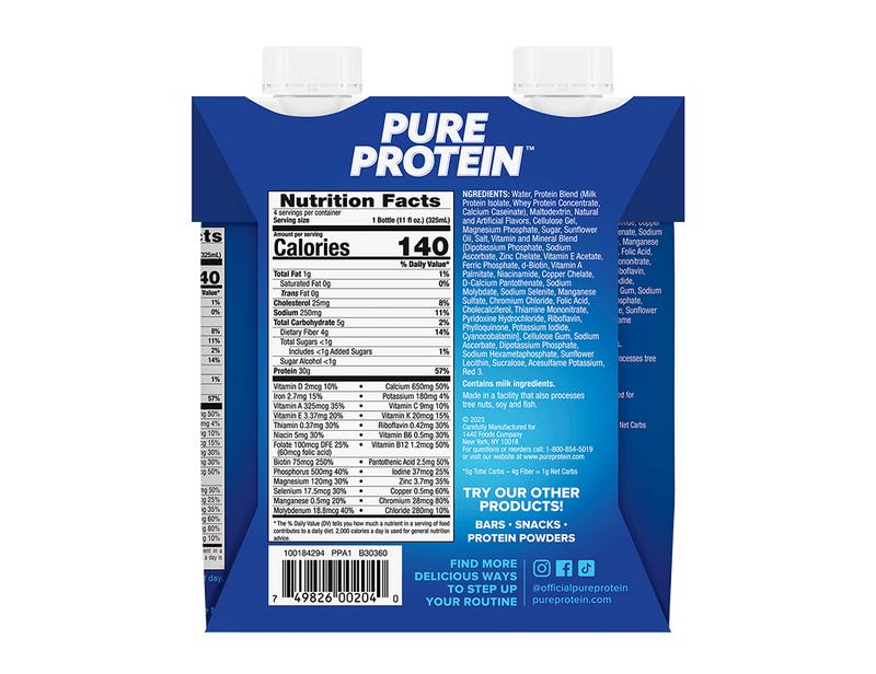This Pure Protein® Shake can help fuel your busy life with 30 grams of protein to support lean muscle and strength and less than 1 g of sugar. The same great protein as the original formula but with added vitamins and minerals, more fiber, protein and more flavor! Enjoy this strawberry shake before or after workouts, or any time of day when you need a nutritious boost.