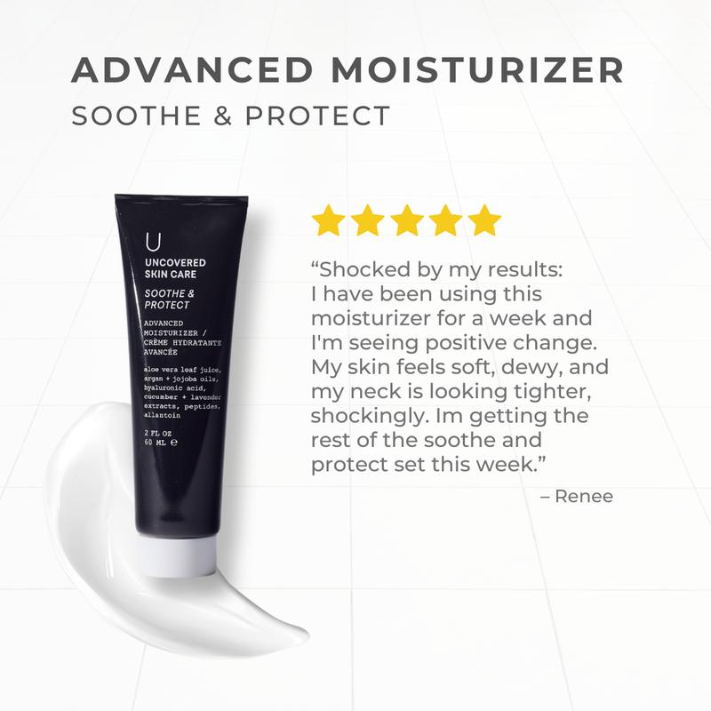 ⨠Soothe & Protect with our Advanced Moisturizer. This lightweight lotion hydrates with proven ingredients, leaving your skin healthy and soothed. Ideal for a final step in your routine, massage it into your face and neck day and night.