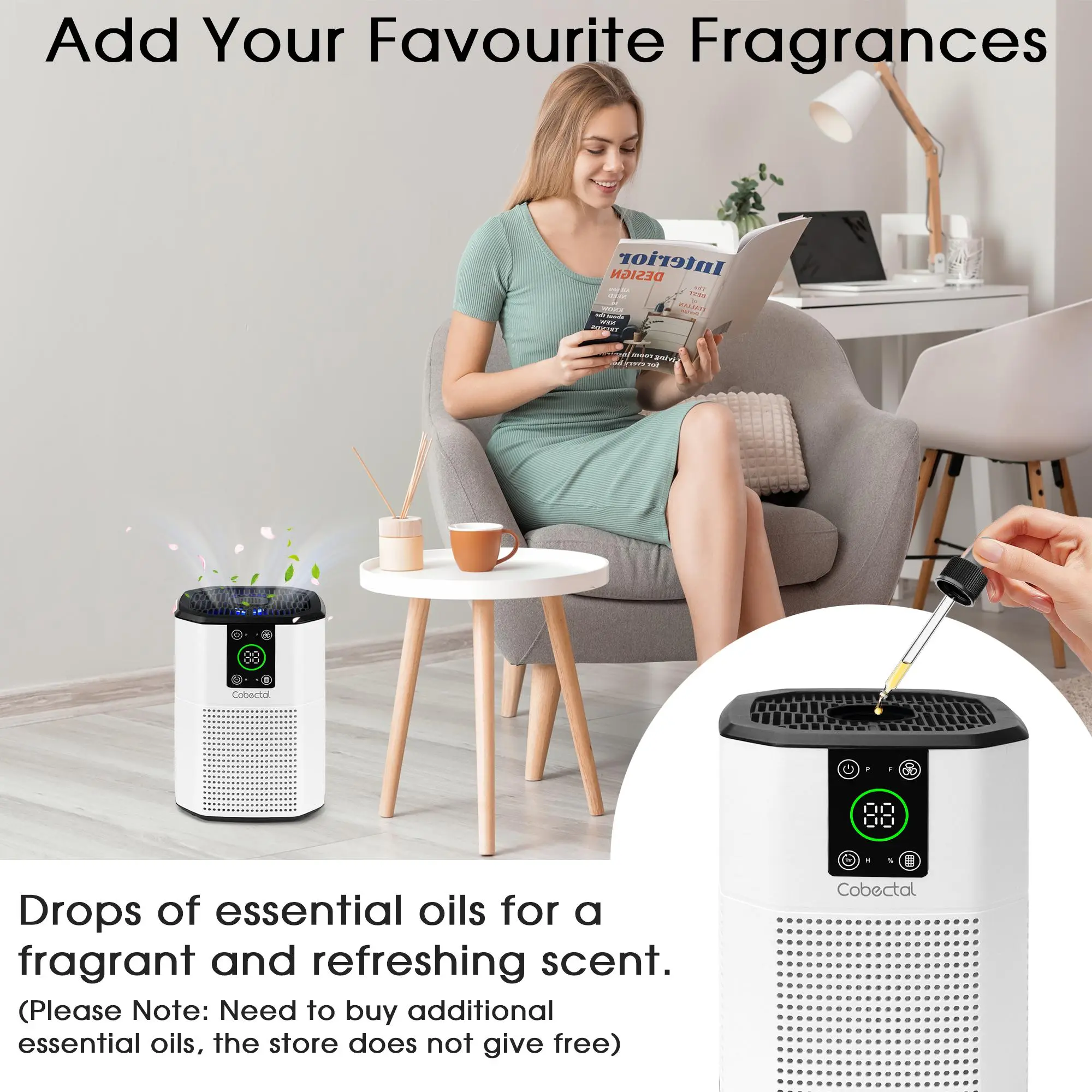 HIGH EFFICIENT PURIFICATION & AROMA FUNCTION - This home air purifier has a 360° suction hole design that refreshes the air in rooms up to 450 Sq.Ft. With the aroma function, just drop 1-3 drops of the essential oil into the aroma tank on the top of the air purifier and you will feel the fragrance in your bedroom. We recommend using only this amount to prevent overfilling, which could damage the motor and void the warranty.