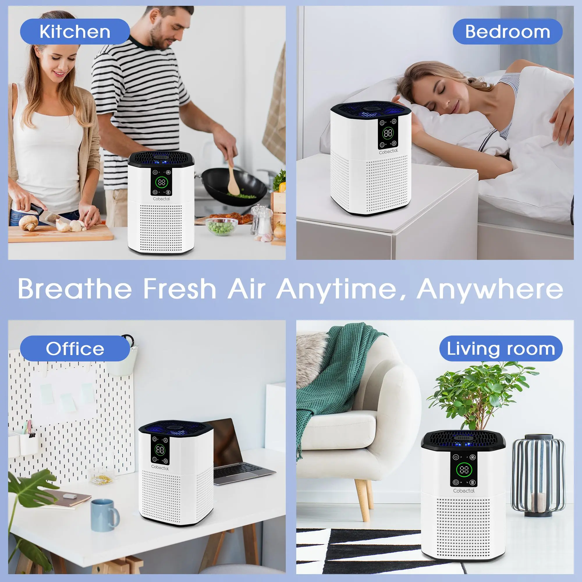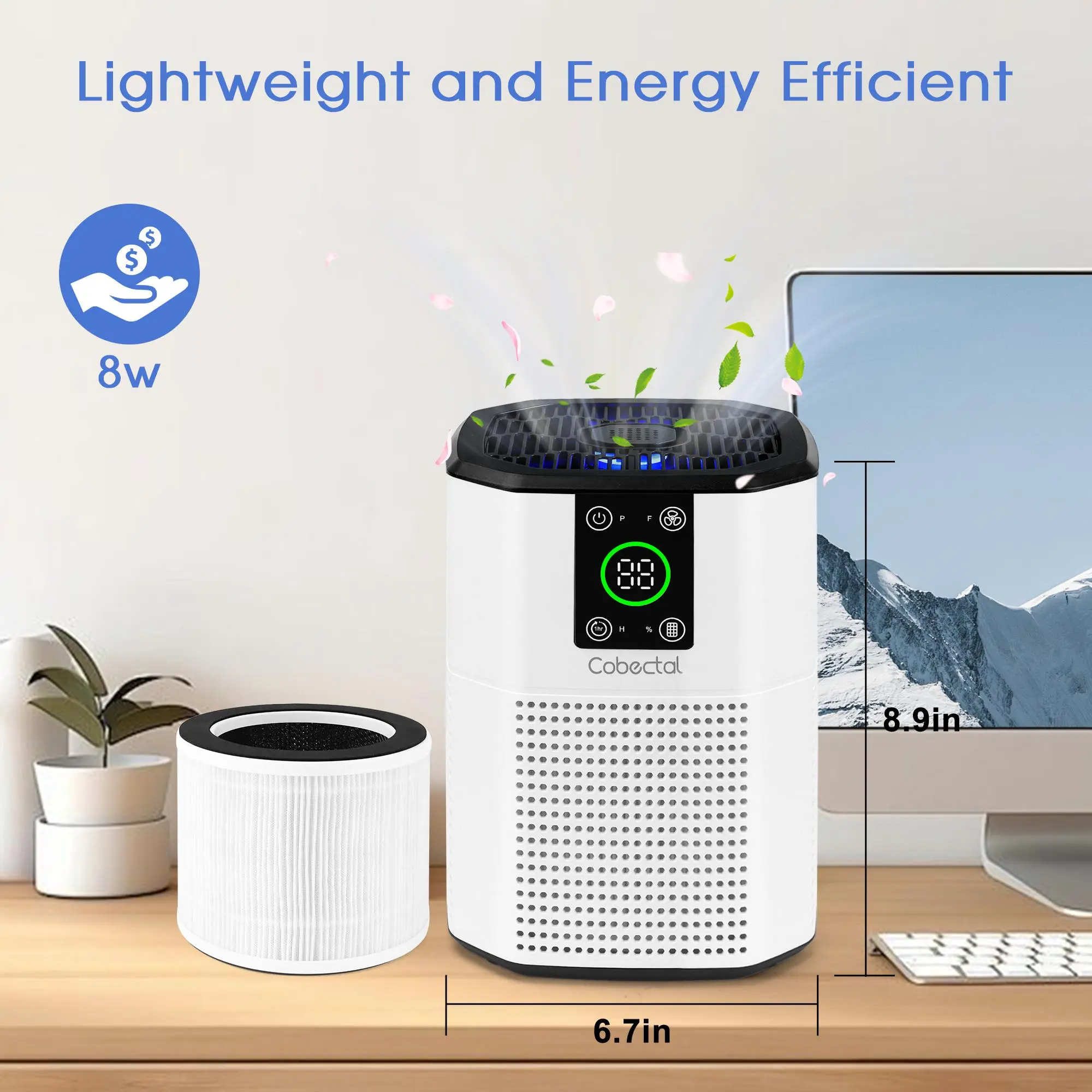 COMPACT & PORTABLE - The Cobectal air purifier is compact in size and saves space in your home, it can be placed on a desktop or put into a cupboard for storage.With stylish and elegant appearance, this small air purifier can also be used as a gift for family and friends during holidays