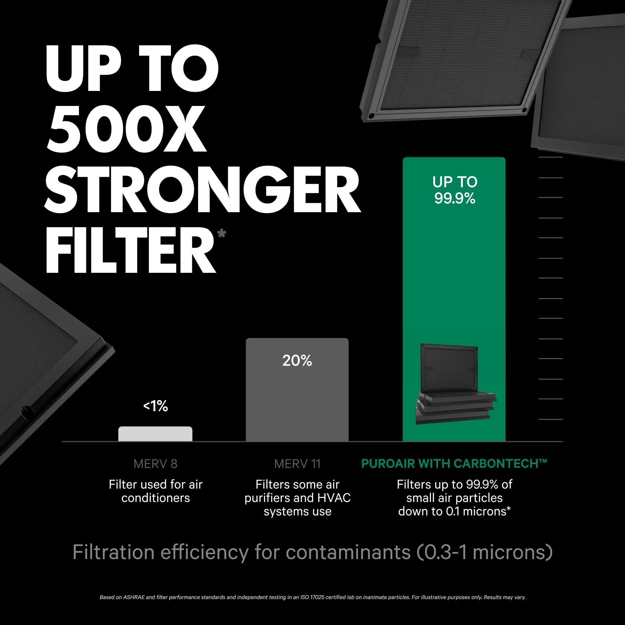 ·3-Layer Filter: Pre-screen filter, HEPA filter, and CarbonTech™ activated carbon filter for complete air filtration