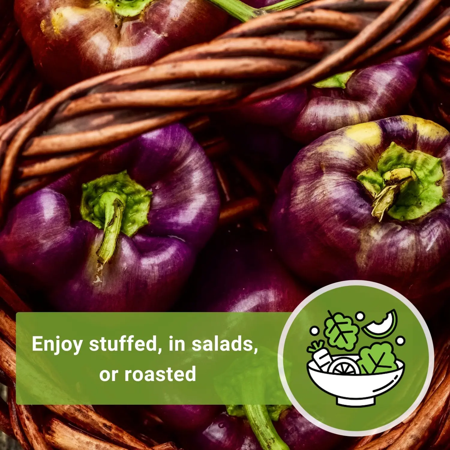 ·Crisp thick walled pepper full of flavor for salads, stuffing, frying, or eaten raw.