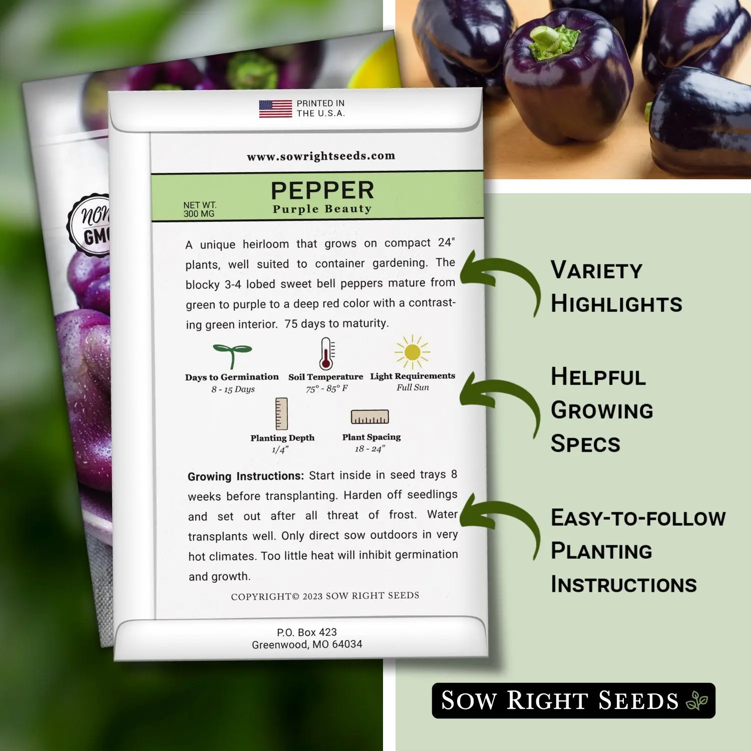 ·Large, premium seed packets give instructions on how to grow and when to plant outdoors.