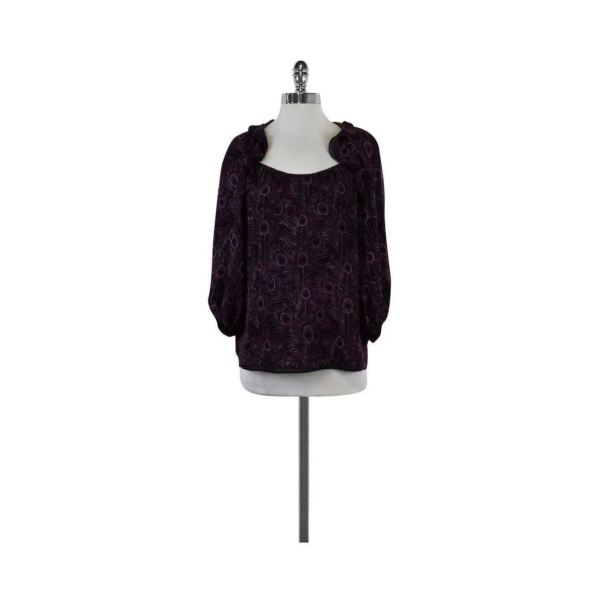 Nanette Lepore - Purple & Black Peacock Print Blouse Sz 0