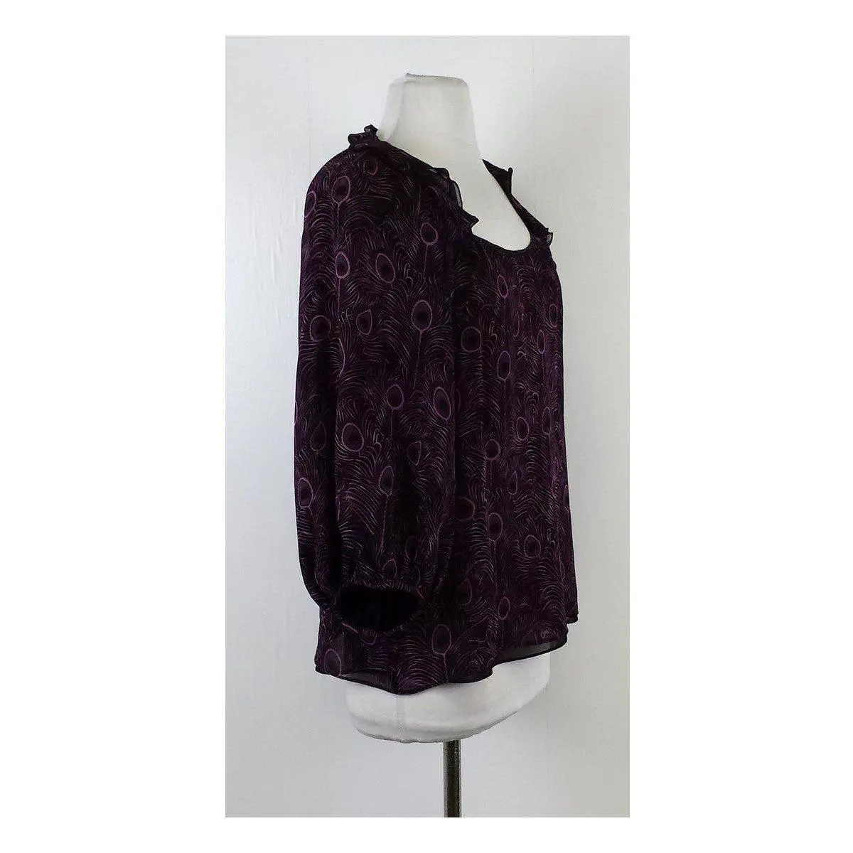 5. Nanette Lepore - Purple & Black Peacock Print Blouse Sz 0