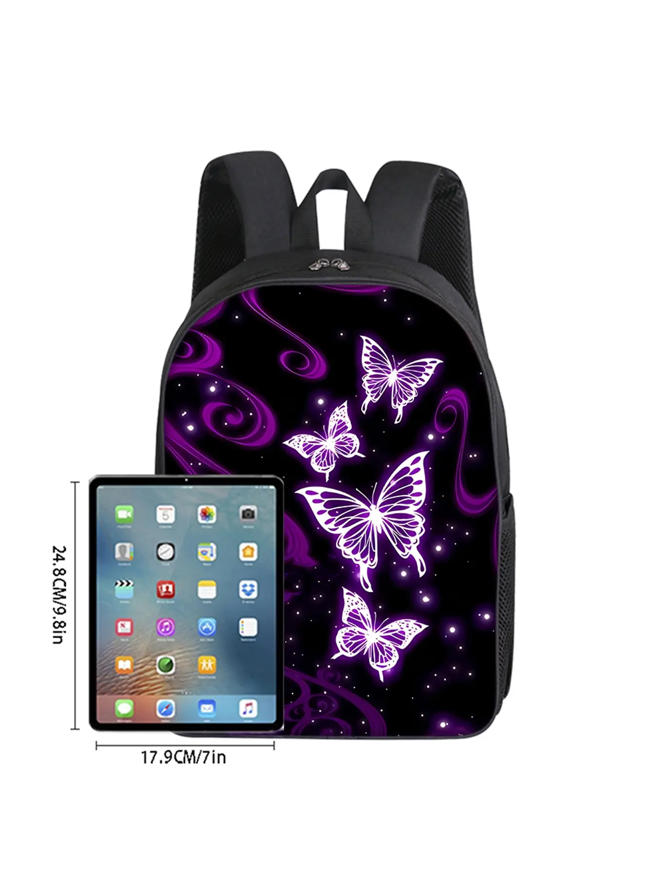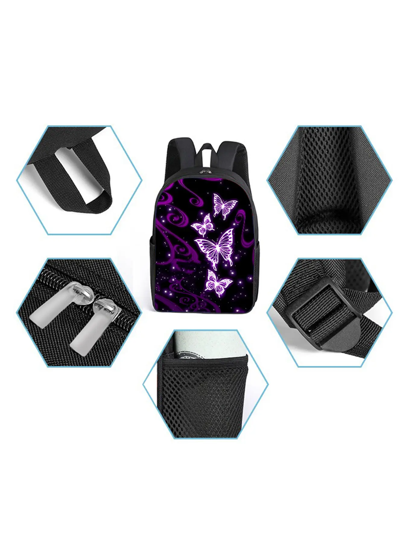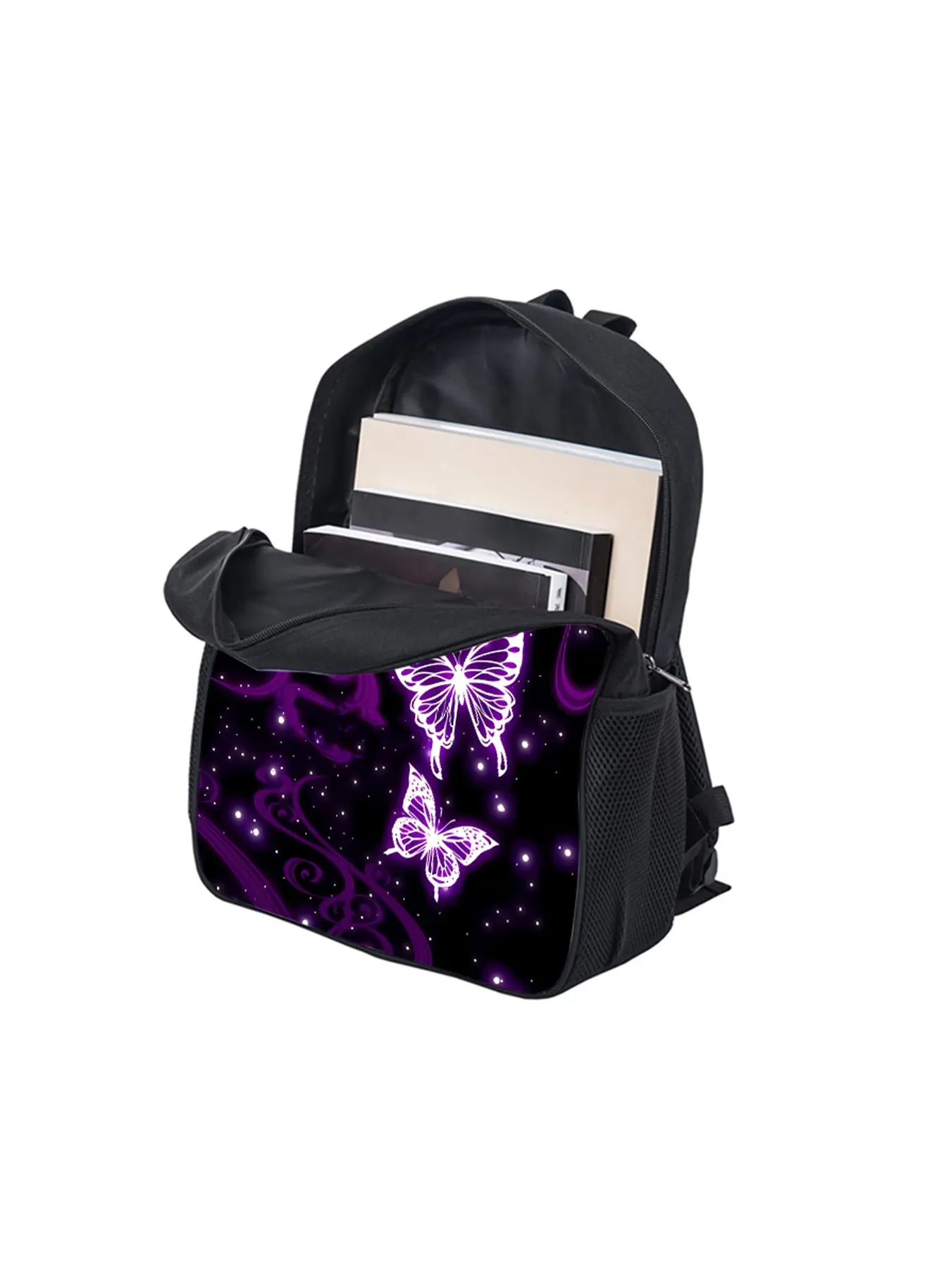 Purple Butterfly Pattern Printed 16-inch Single-layer Backpack