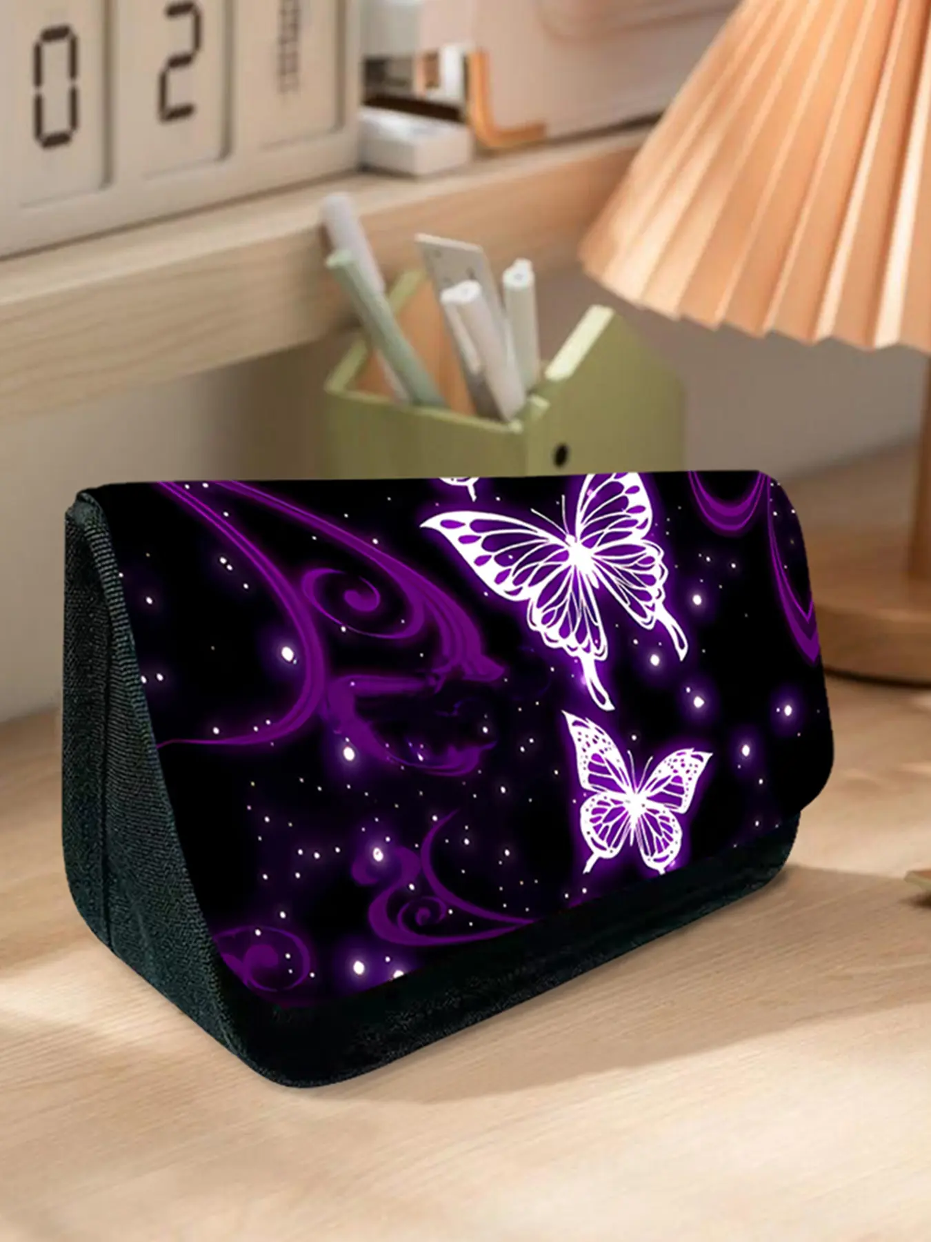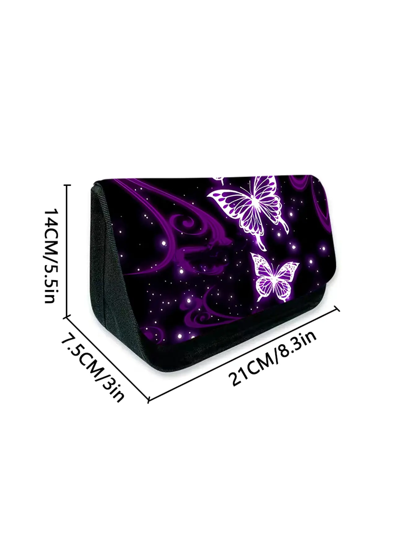 Purple Butterfly Pattern Printed Triangular Double-Layer Flap Pencil Case