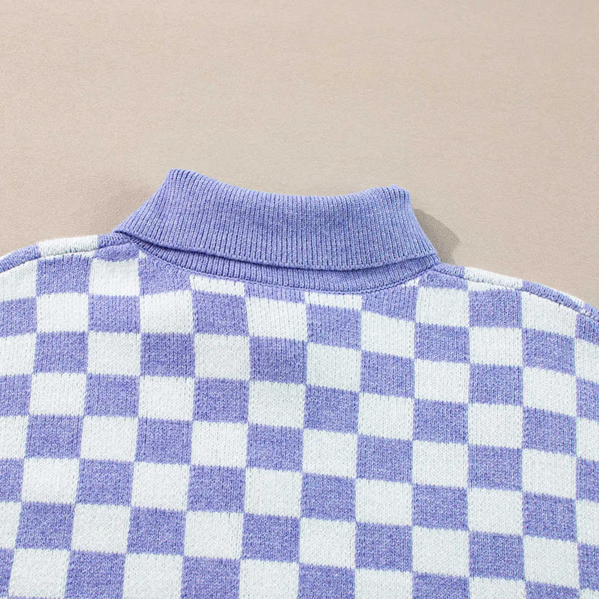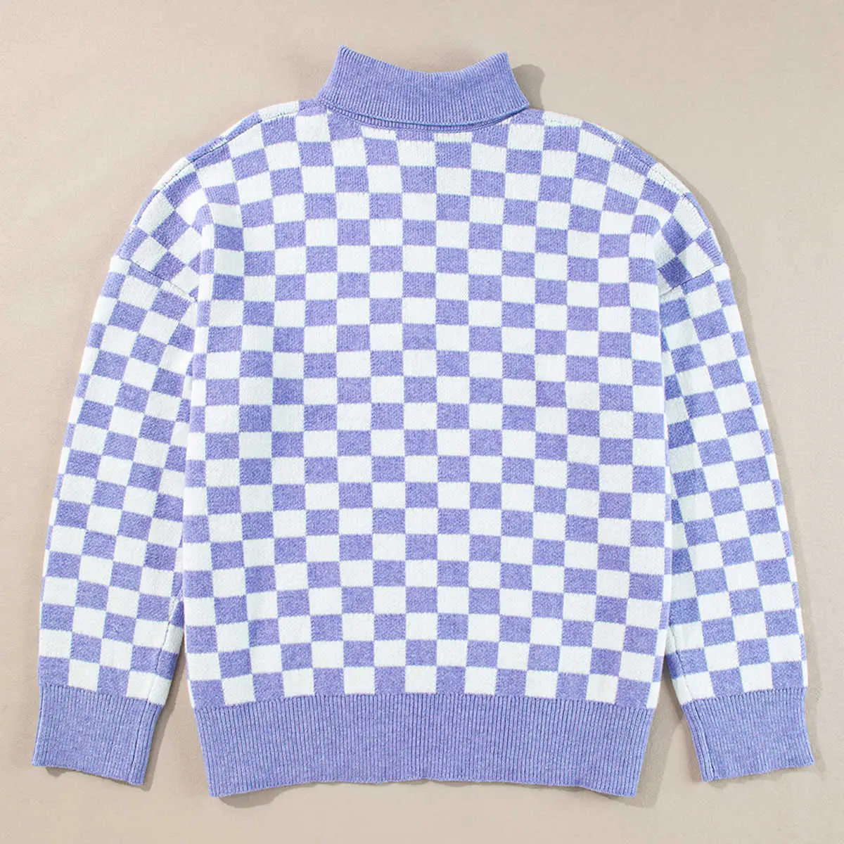 ·This trendy sweater with a collared v neckline is elegant and chic.Curvy figure with functional buttons, long sleeves with a dropped shoulder and cuffed hems.This cozy pullover is so soft, features a colored checkered design, long enough to tuck.Perfect to wear to brunches, festivals, dinner dates or just a Saturday on the town.