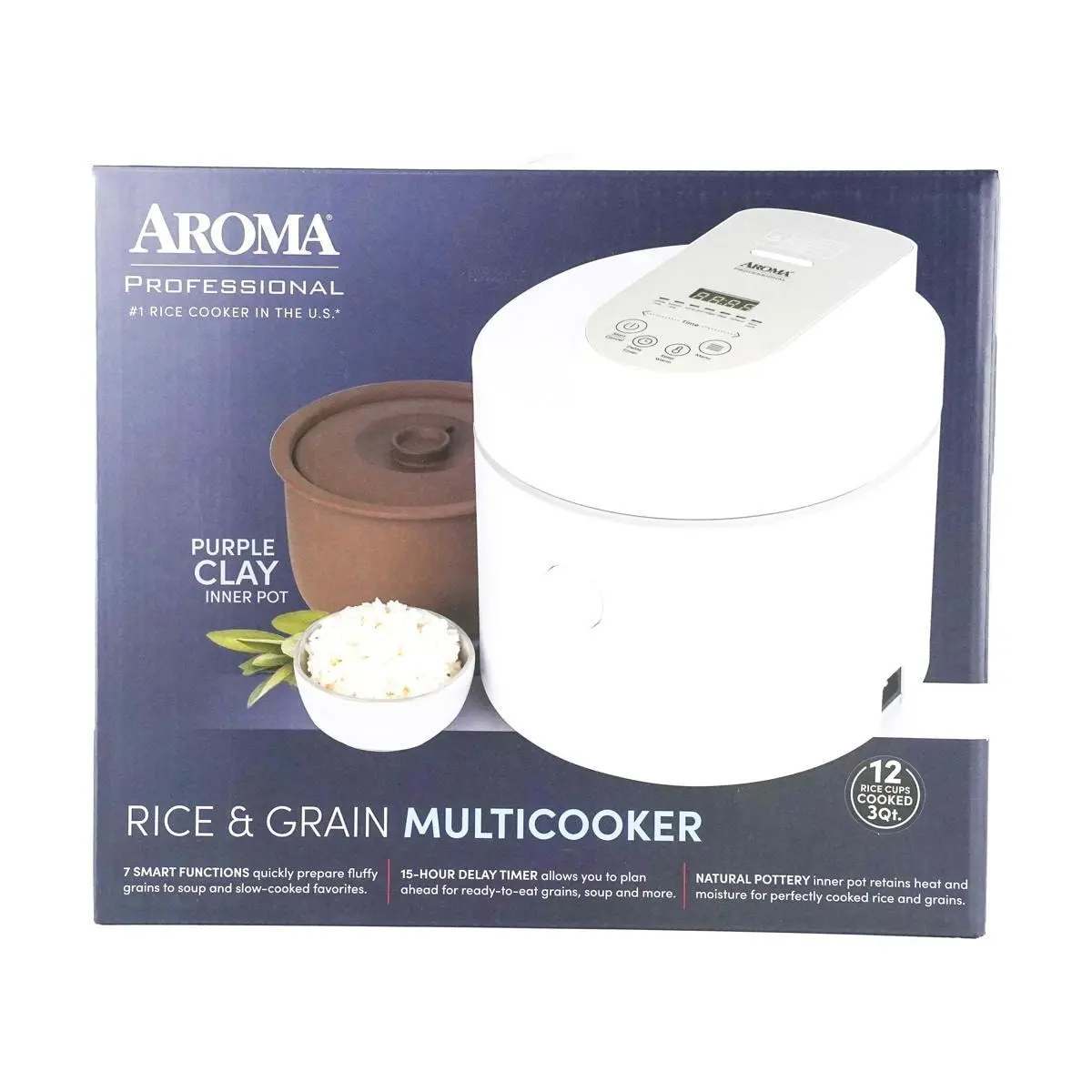 ·COMPLETE KIT: Aroma’s 3-quart multicooker comes with a purple clay pot and lid, spatula, and rice cup. Plus, the pot is clearly marked with water lines for fool-proof measuring.