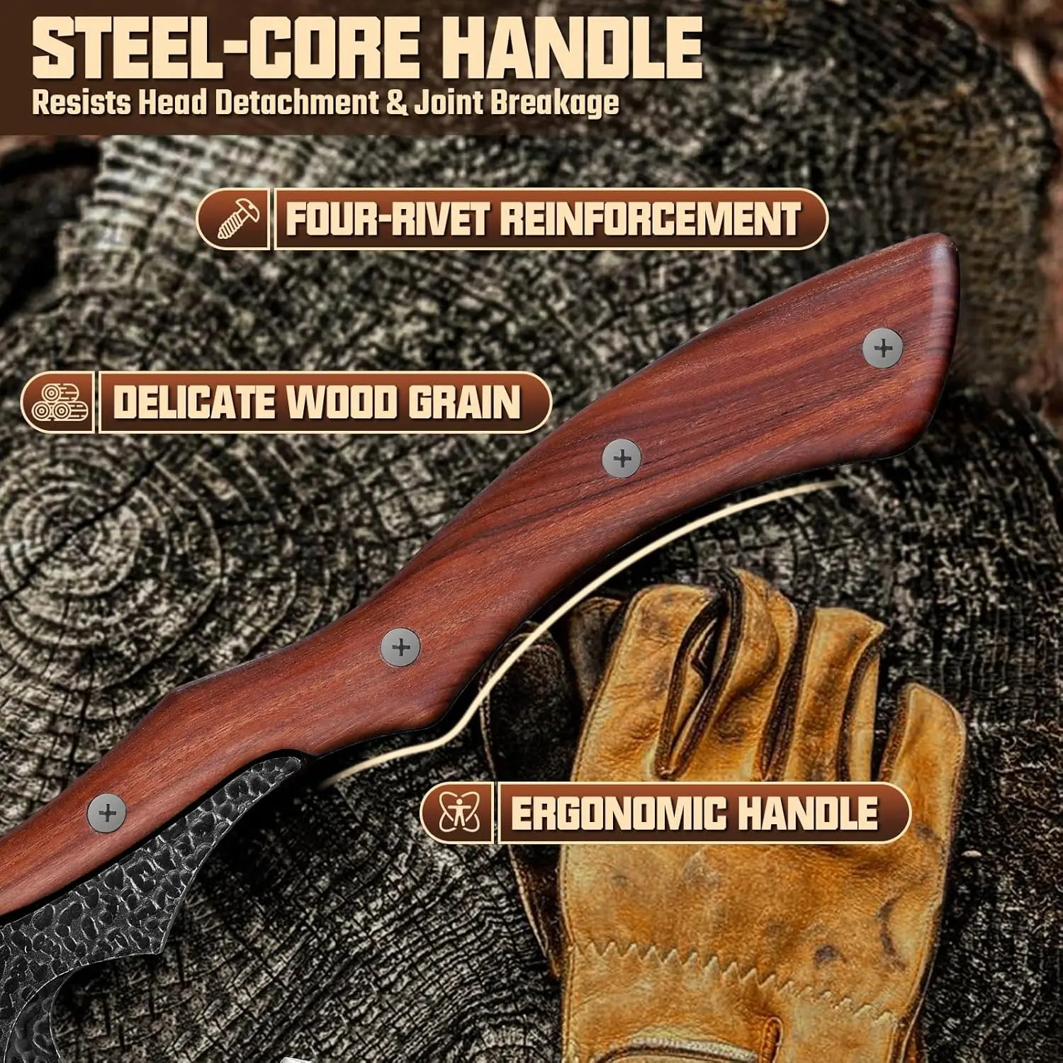 Featuring a stable full tang structure reinforced with solid rivets, this axe is built to maintain durability and balance during use.
