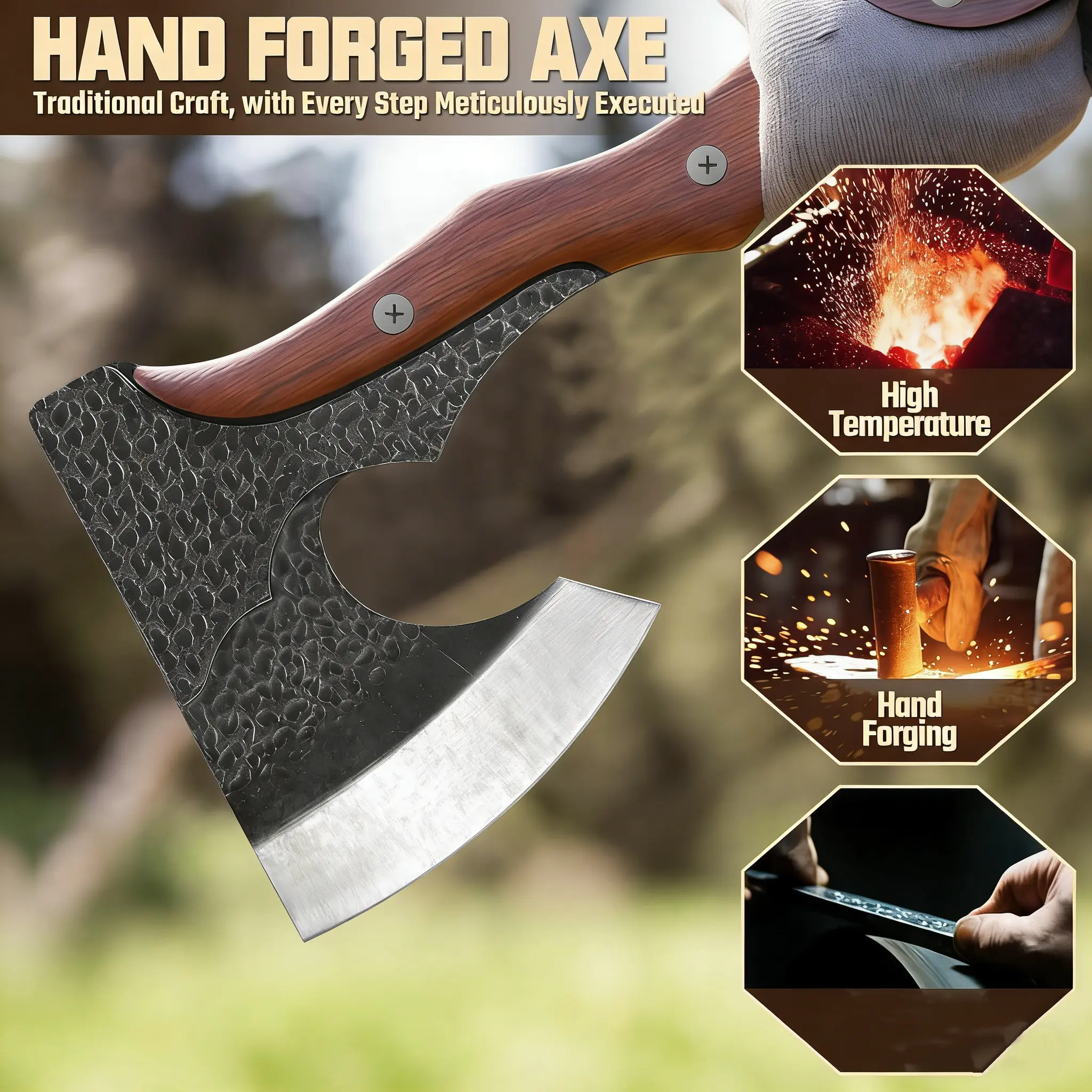 This axe comes with a protective sheath and a handcrafted appearance, making it a thoughtful gift for gardening or outdoor enthusiasts on special occasions.