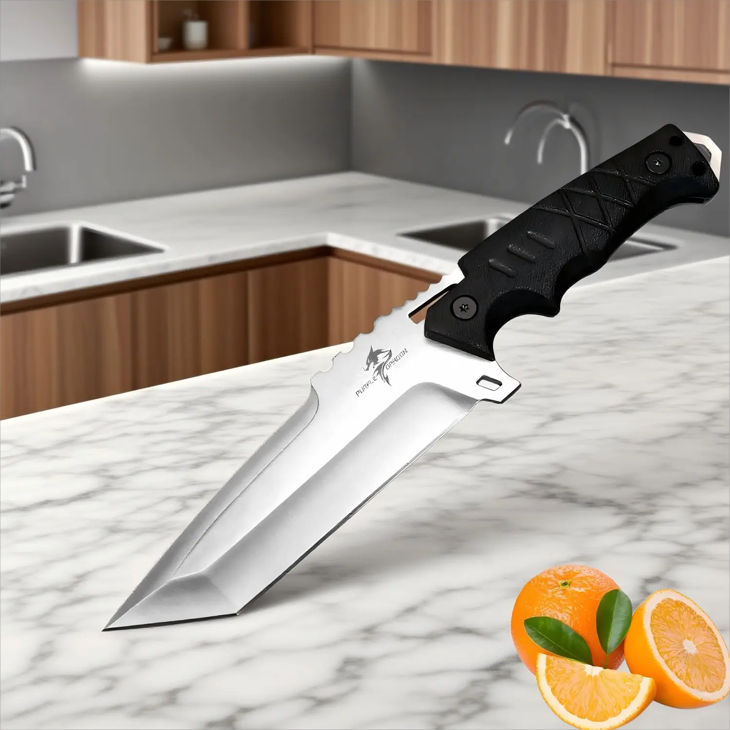 High quality steel came very sharp. Feels great in my hand. With the length of the blade a longer sheath would’ve been ideal for carrying, but it is a very nice piece.