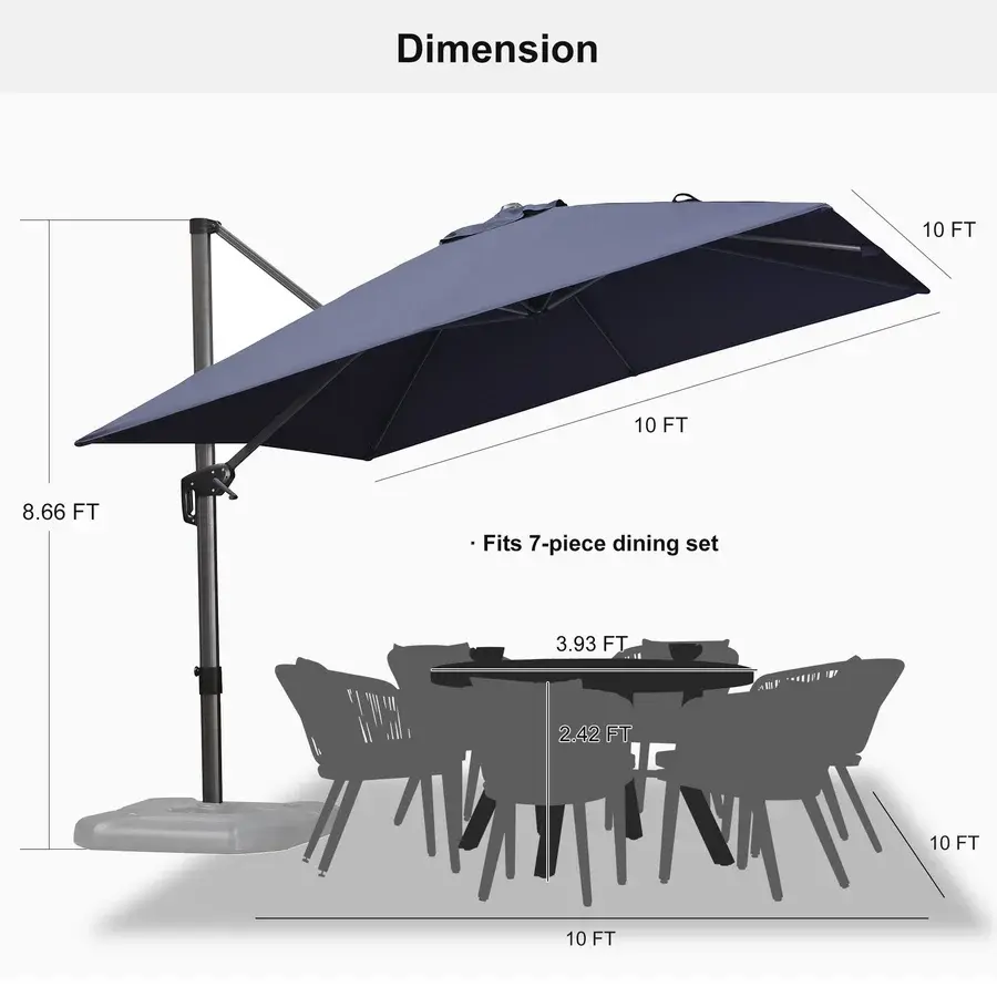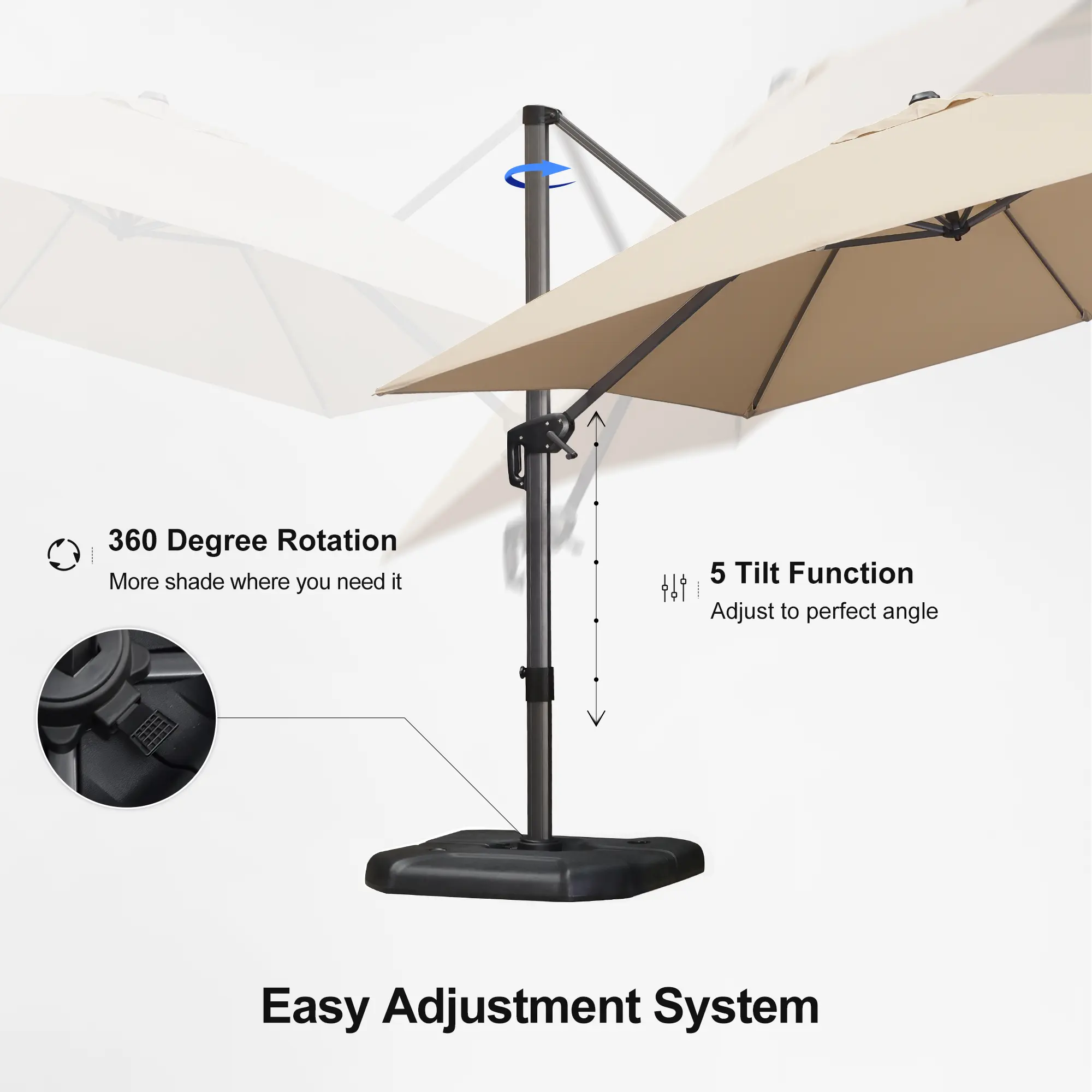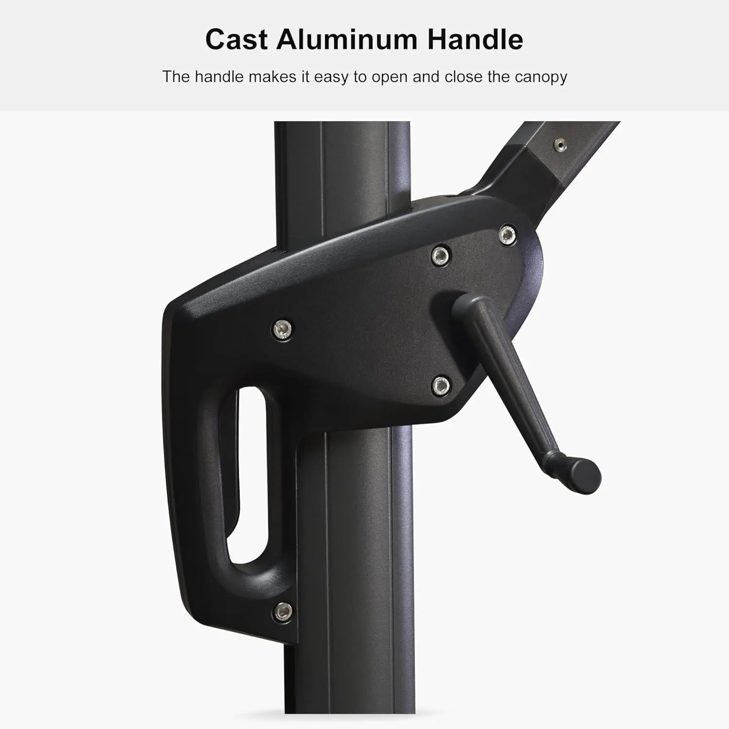 [ Easier to Use ] The crank system of this cantilever patio umbrella can easily lift and lower the awning, the unique handle design also makes it effortless to tilt the umbrella, and the foot pedal can complete 360-degree rotation.