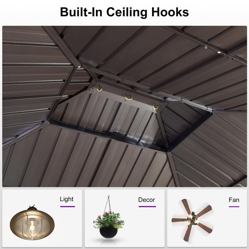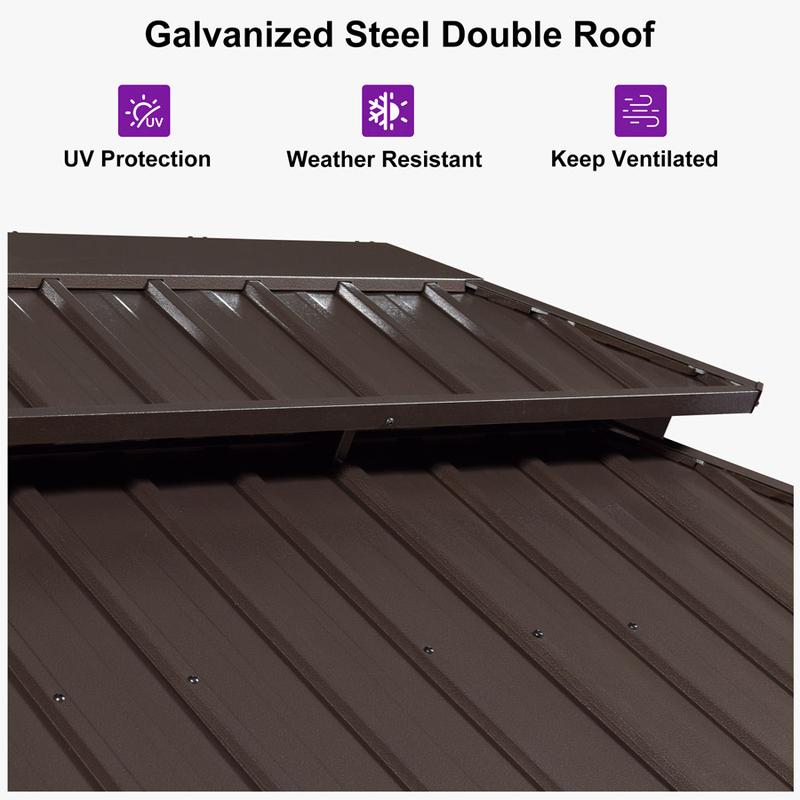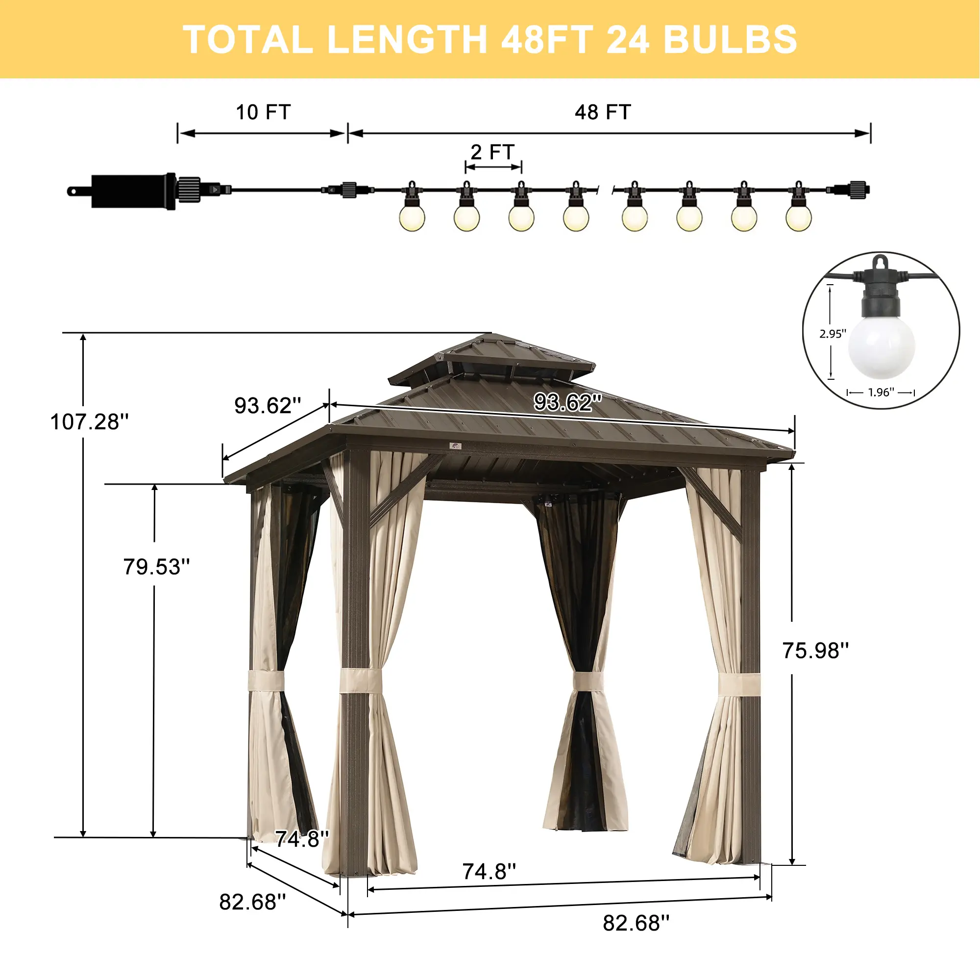 Experience the perfect combination of elegance and practicality with our illuminated gazebo. The integrated lighting casts a soft, ambient glow, setting the mood for romantic dinners, lively gatherings, or peaceful relaxation. Built to last, it features a double-layer galvanized steel roof for all-weather use and a rust-resistant aluminum frame for stability. Detachable curtains and mesh add privacy and comfort, making this gazebo the ultimate setting for creating unforgettable nights in your backyard.