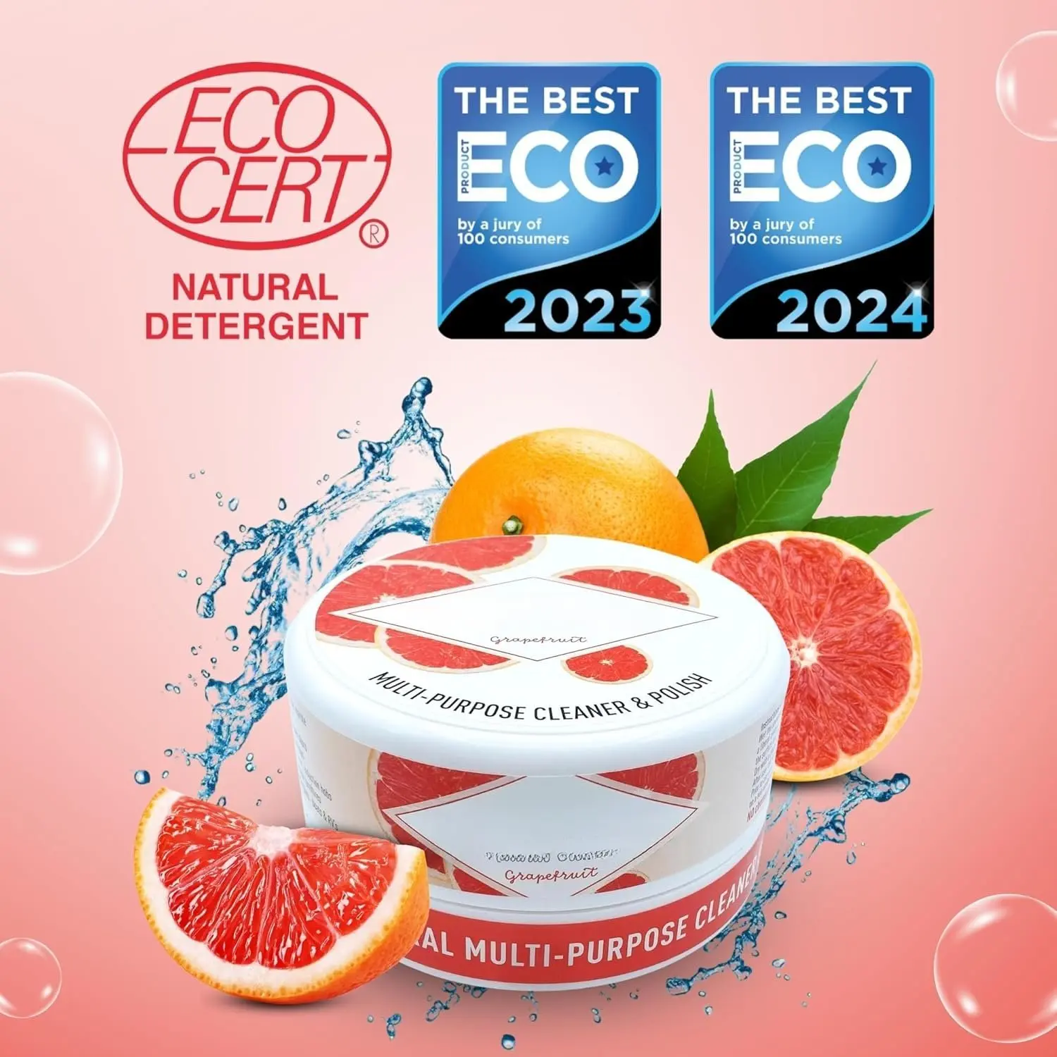PURPOSE CLEANER : is a multi purpose cleaner that works on any washable surface. It is made with ingredients only : clay, vegetal oil, vegetal glycerin, grapefruit . No harmful or phosphates !