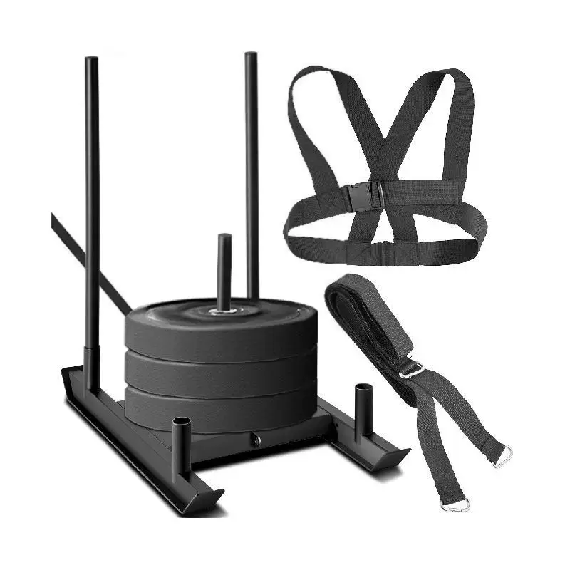 The exercise sled load capacity is adjustable; you can choose your desired weight by adding different weight plates—Max capacity: 500 lbs.