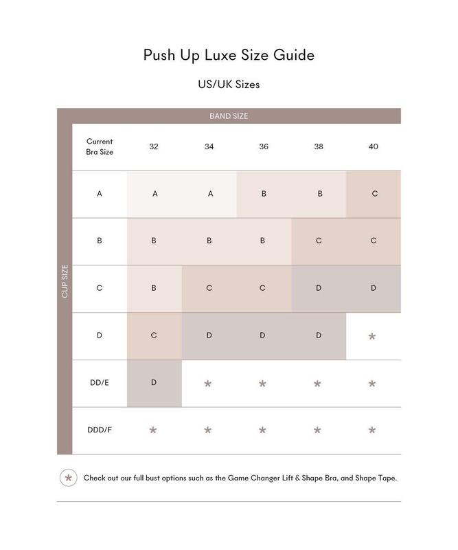 (Reusable adhesive covers made from SkinFinish) Our padded Push Up adhesive bra gives extra volume. Made from buttery soft seamless recycled fabric and medical grade adhesive, wear over 50 times with proper care. Best for small to medium busts and can be combined with our Shape Tape to make it guaranteed sweat-proof.