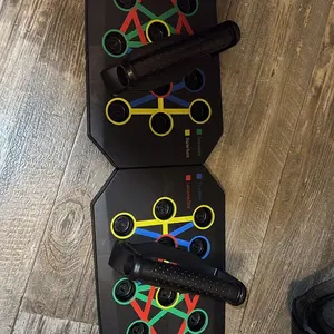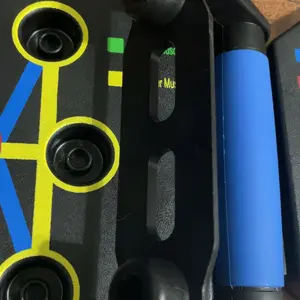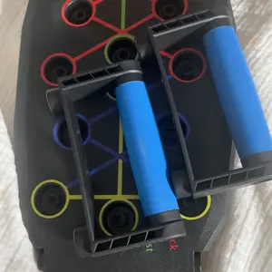 Very cheap plastic quality. Graphics are very poor quality. Handles stick in the holes, not easy to change in push-up position. Base is two separate pieces and doesn’t snap together well. More of a pressure fit. Between quality and shipping, very overpriced.