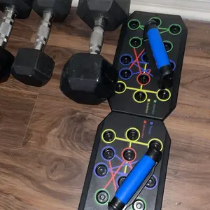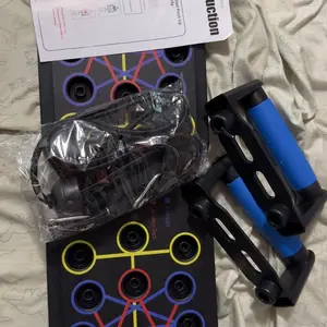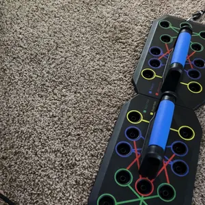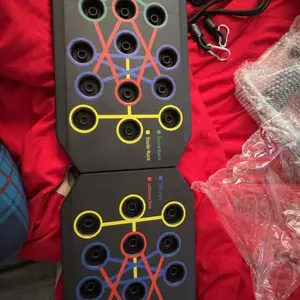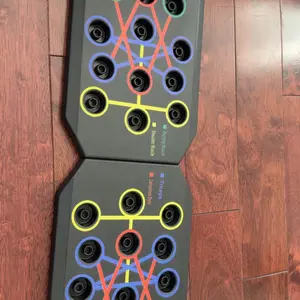 Not what was shown in the pictures, extremely cheaply made variant, when I try to do pushups since the plastic is so sh*t it’ll bend and pop out of place.