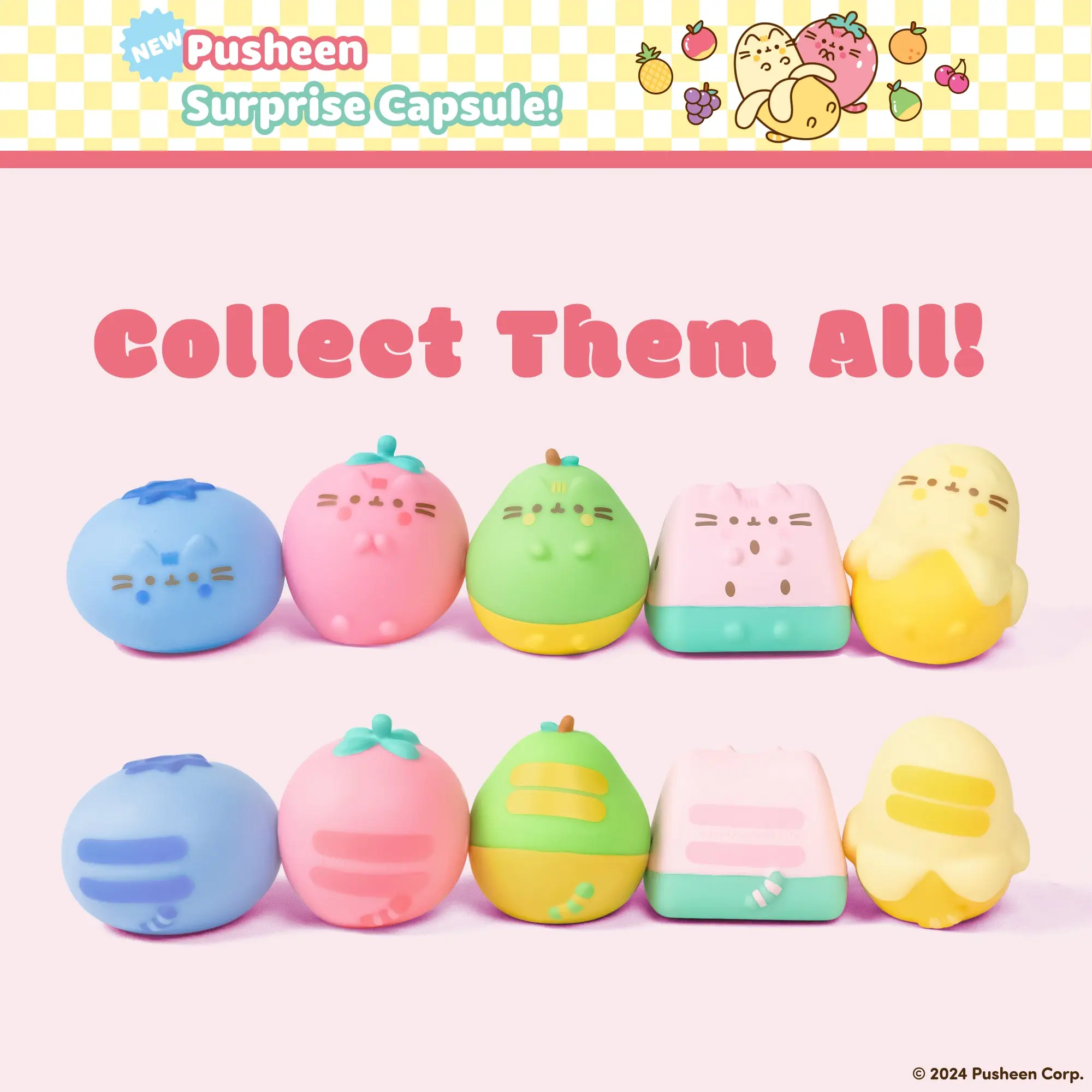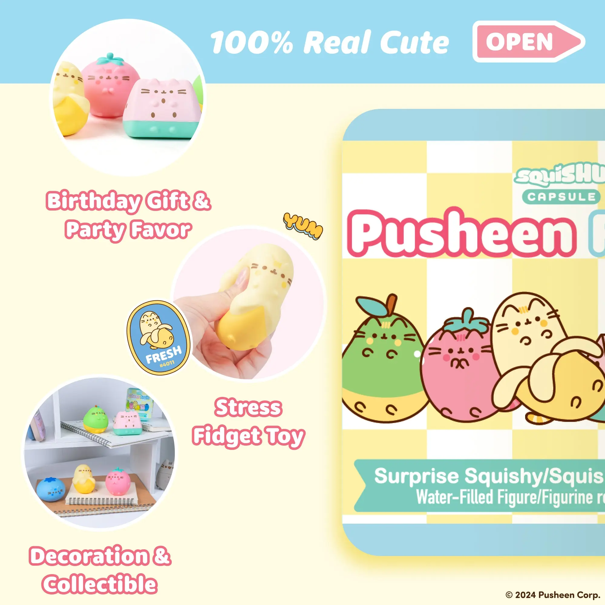 ·OFFICIALLY LICENSED -️ Officially licensed Pusheen the Cat squishy toys; detailed and adorable fruit-shaped designs including Pear, Blueberry, Banana, Strawberry, and Watermelon!
