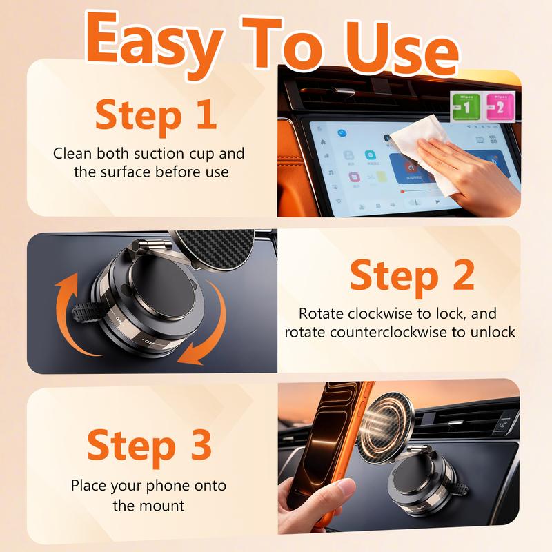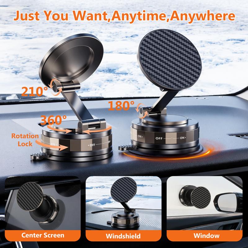 Easy Setup & Removal – Place the vacuum base on a clean, smooth surface and rotate to lock. Detaches without residue, so you can easily reposition it between cars, mirrors, and other smooth surfaces. And folds flat for convenient storage or travel.