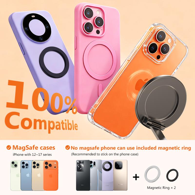 Wide Device Compatibility – Designed for iPhone 17/16/15/14/13/12 series and all MagSafe-compatible devices. The included magnetic ring supports strong magnetic suction whether your device is bare or in a protective case.