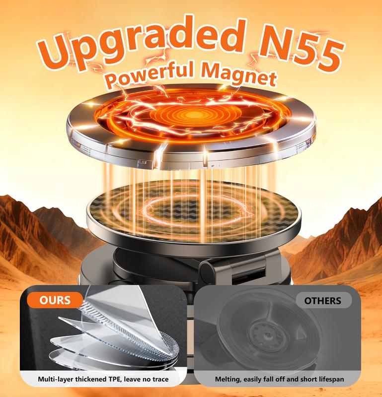 Enhanced Magnetic Hold – Built with an N55 circular magnet offering powerful 2400gf holding strength. After repeated vibration and road condition tests, the phone remains stable while driving over uneven terrain and during quick stops.