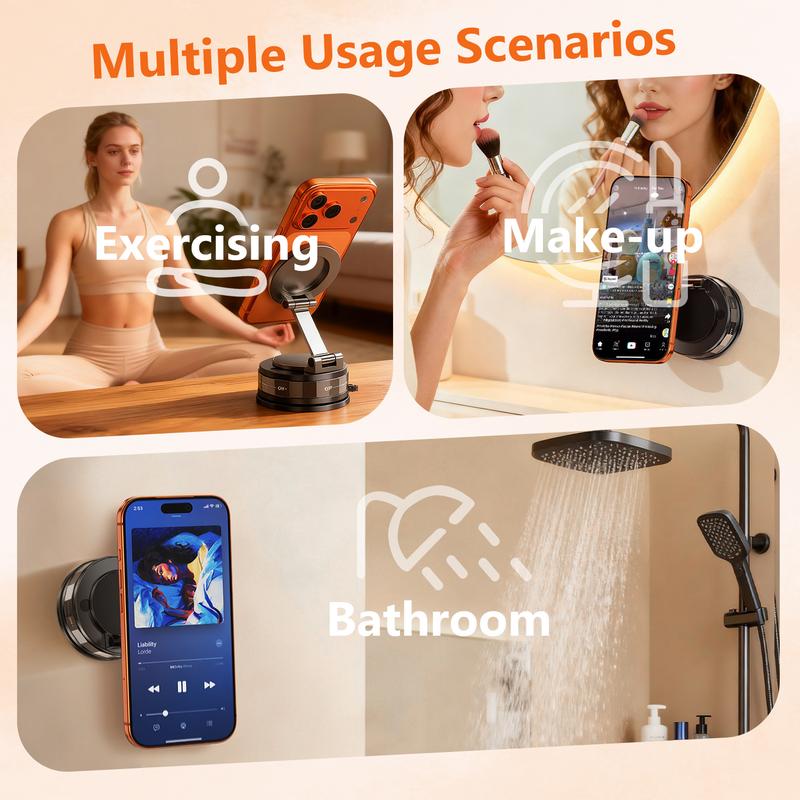 Multi-Scene Mounting – Works beyond the car dashboard or windshield. Attaches to smooth surfaces such as mirrors, tiles, acrylic, metal, and walls. Ideal for gym workouts, kitchen cooking videos, office workstations, and indoor recording setups.