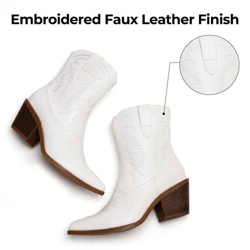 ·RETRO EMBROIDERED DESIGN: Featuring a pointed toe and delicate embroidery, these embroidered booties showcase cowboy style charm with modern elegance. Perfect for parties, festivals, or casual outings.