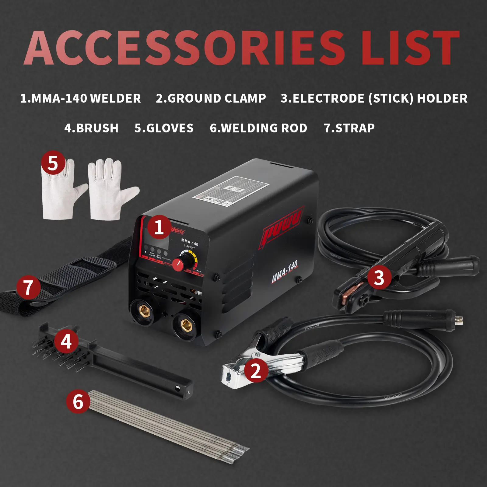5. Puwu 110V 140A Stick Welder Lift Tig Welder Portable Welding Machine with Overheat Protection,Electrode, Gloves, brush, trial welding rod, Quick Connector with Hot Start - MINI MMA Arc Welder