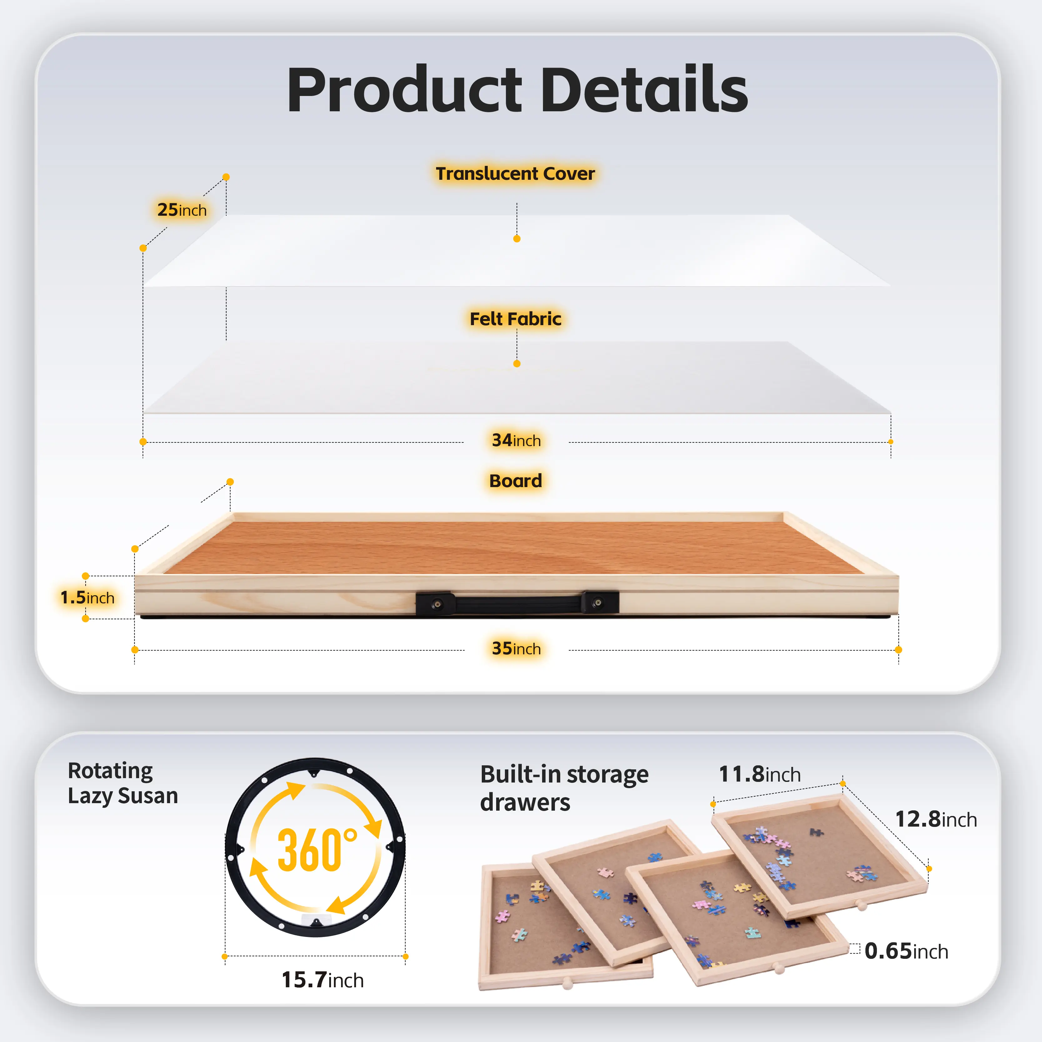 ✨ Portable Design: Comes with a handle for easy transport. Move the board effortlessly to different locations. Perfect for adults and puzzle enthusiasts.