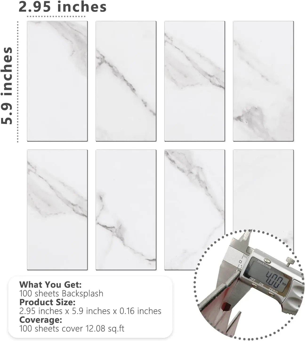 ·SIZE AND COVERAGE: 100 pieces self adhesive polyvinyl chloride tiles, 5.9"x2.9"x0.12" each, cover about 12.08 square feet. Please consider cutting loss 3-5% in every DIY project.