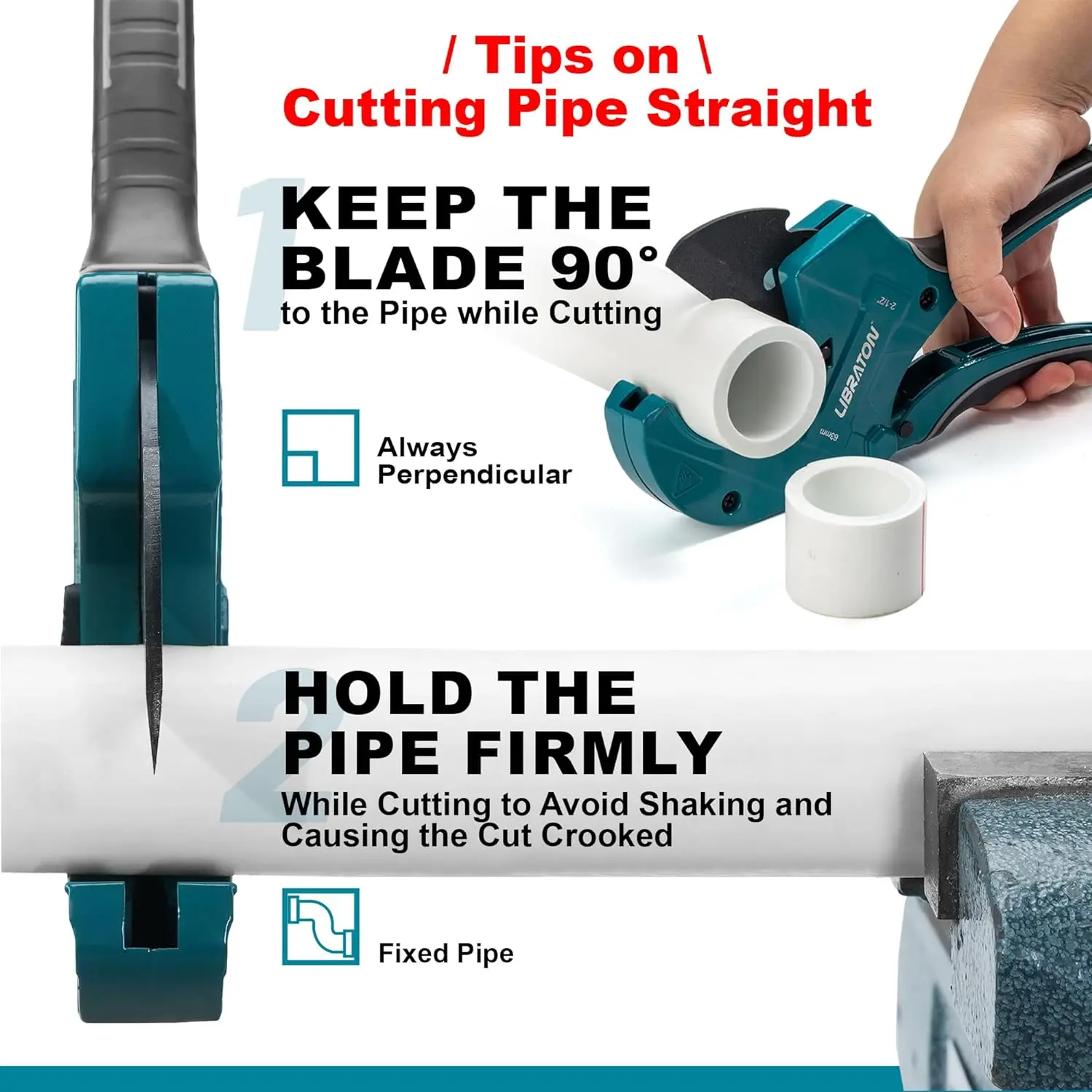 ·【Tips on Cutting Pipes Straight】 Please make sure that the pipe is perpendicular to the blade before cutting, as it helps to ensure cut the pipe straight.