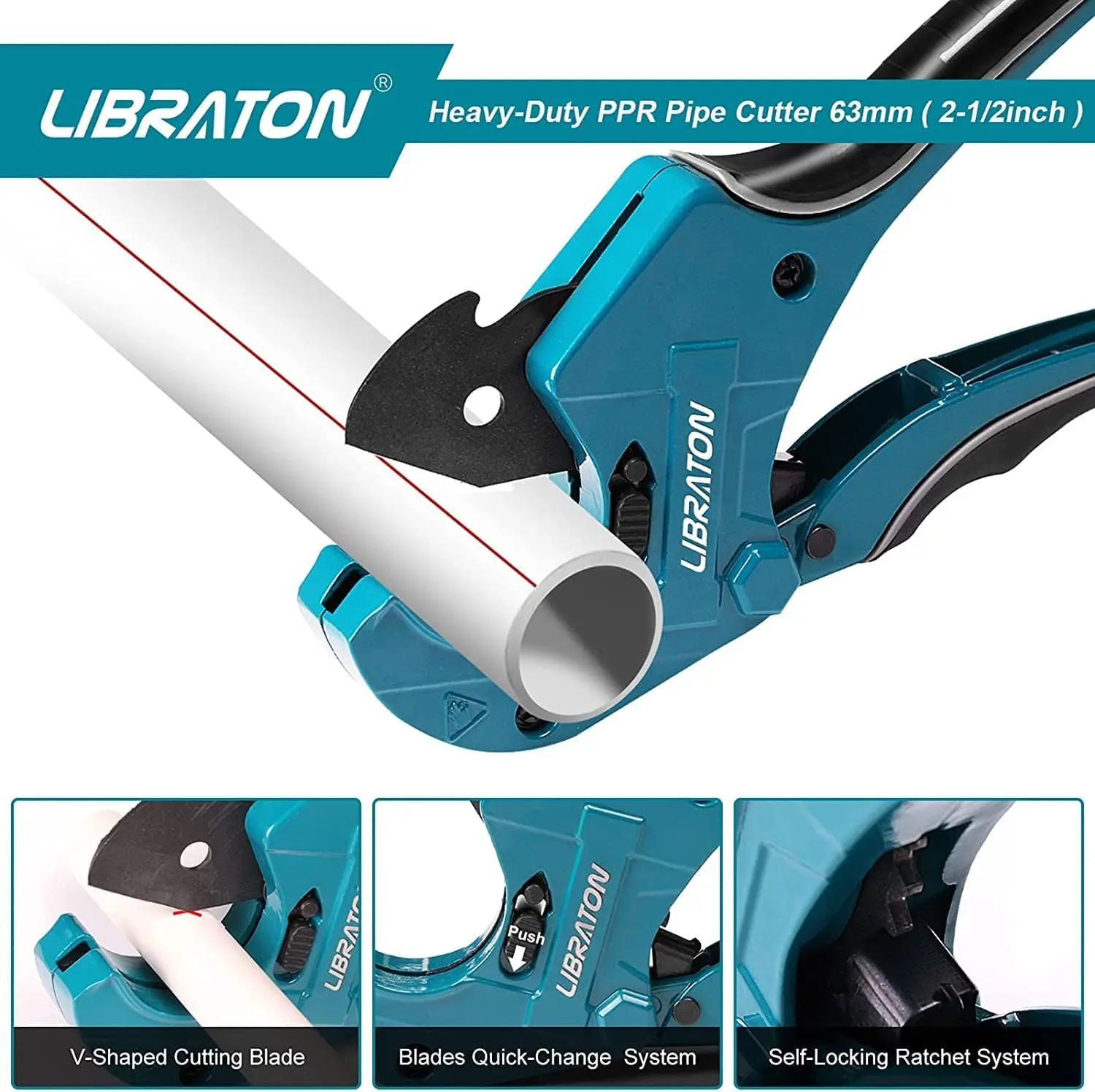 ·【Widely Application】The Libraton ratchet cutter is designed up to 2-1/2-inch (63mm) outer diameter capacity ideal for use to cut a variety of plastic pipe and tube(PVC,CPVC,PP-R, PEX, PE, Rubber Hose etc.), It is an essential cutting tool for your home handyman, plumbers, electricians, and vehicle mechanics.