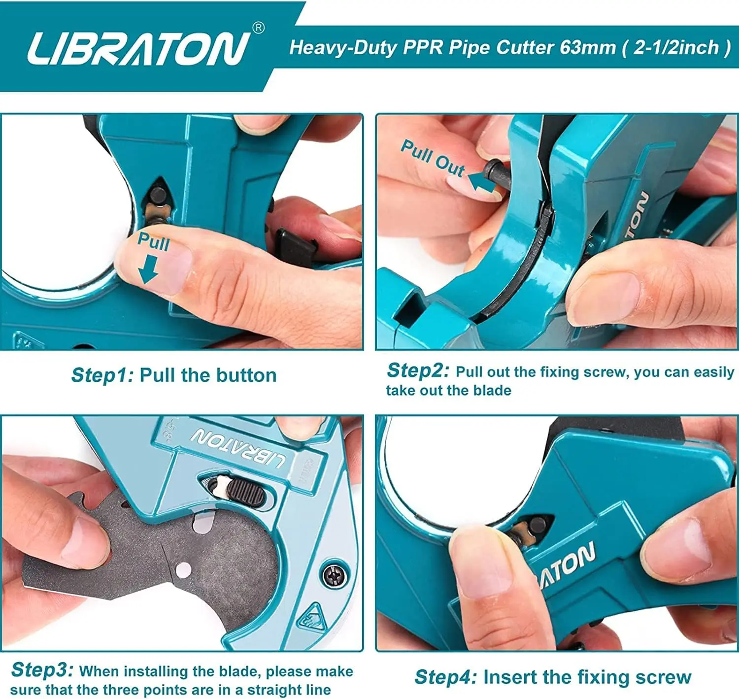 ·【Heavy Duty & Premium Quality】The Libraton PVC pipe cutter body is made of durable hardness aluminum alloy steel. The thick 3mm blade used is SK5 material with precision sharped and Teflon coated. Sturdy construction and big size suitable for heavy-duty use.