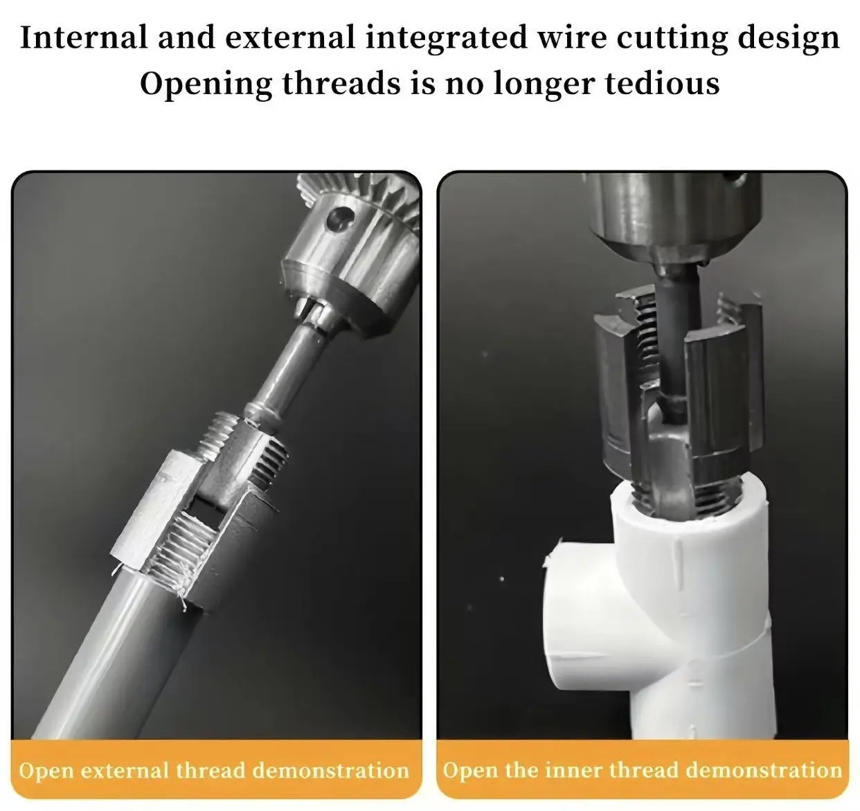 2-piece 1/2 inch and 3/4 inch PVC threaded cutting tool for inner and outer pipe threading, dual-function electric drill kit suitable for PVC plastic pipe threading, precision alloy steel NPT pipe threading sleeve set dual-function pipe thread