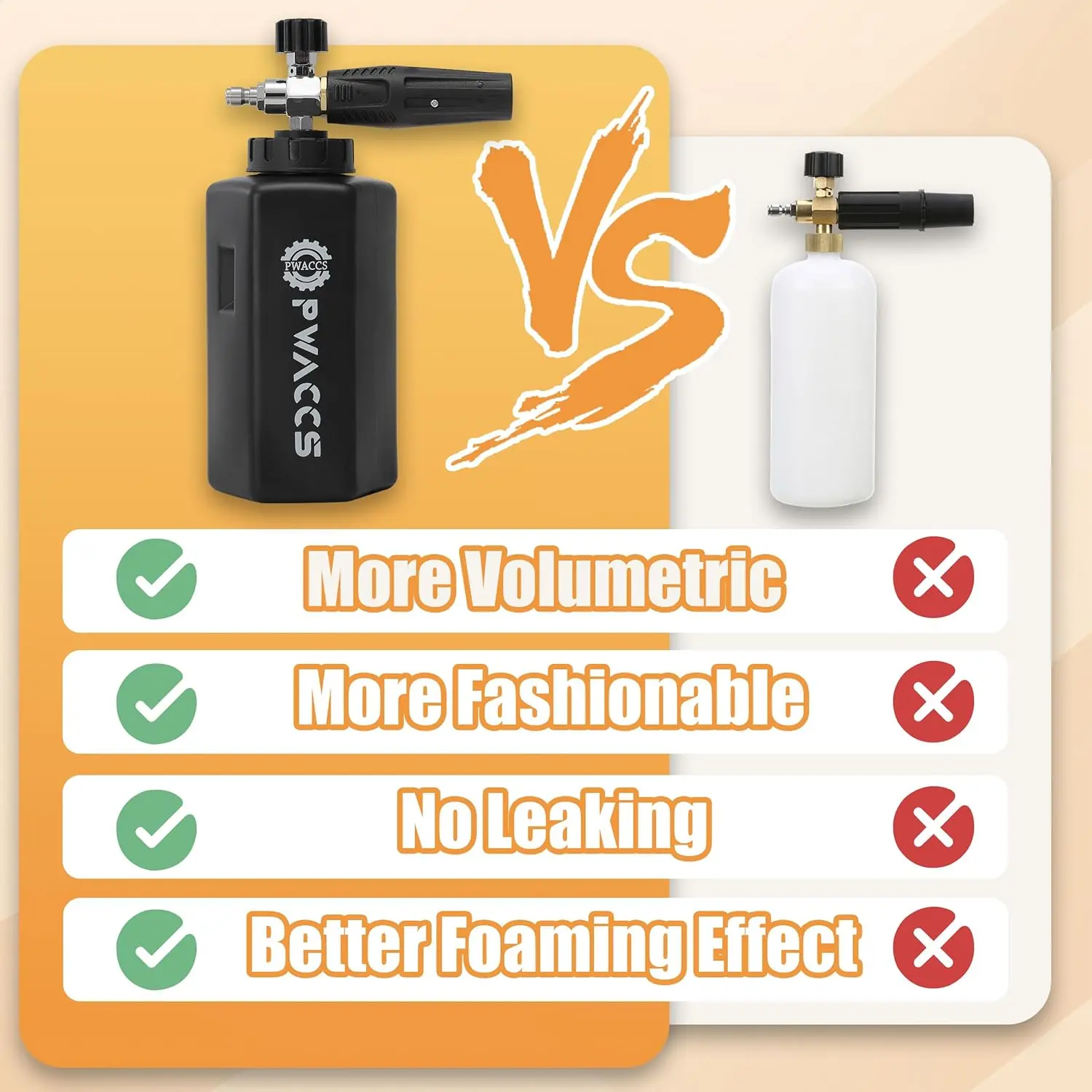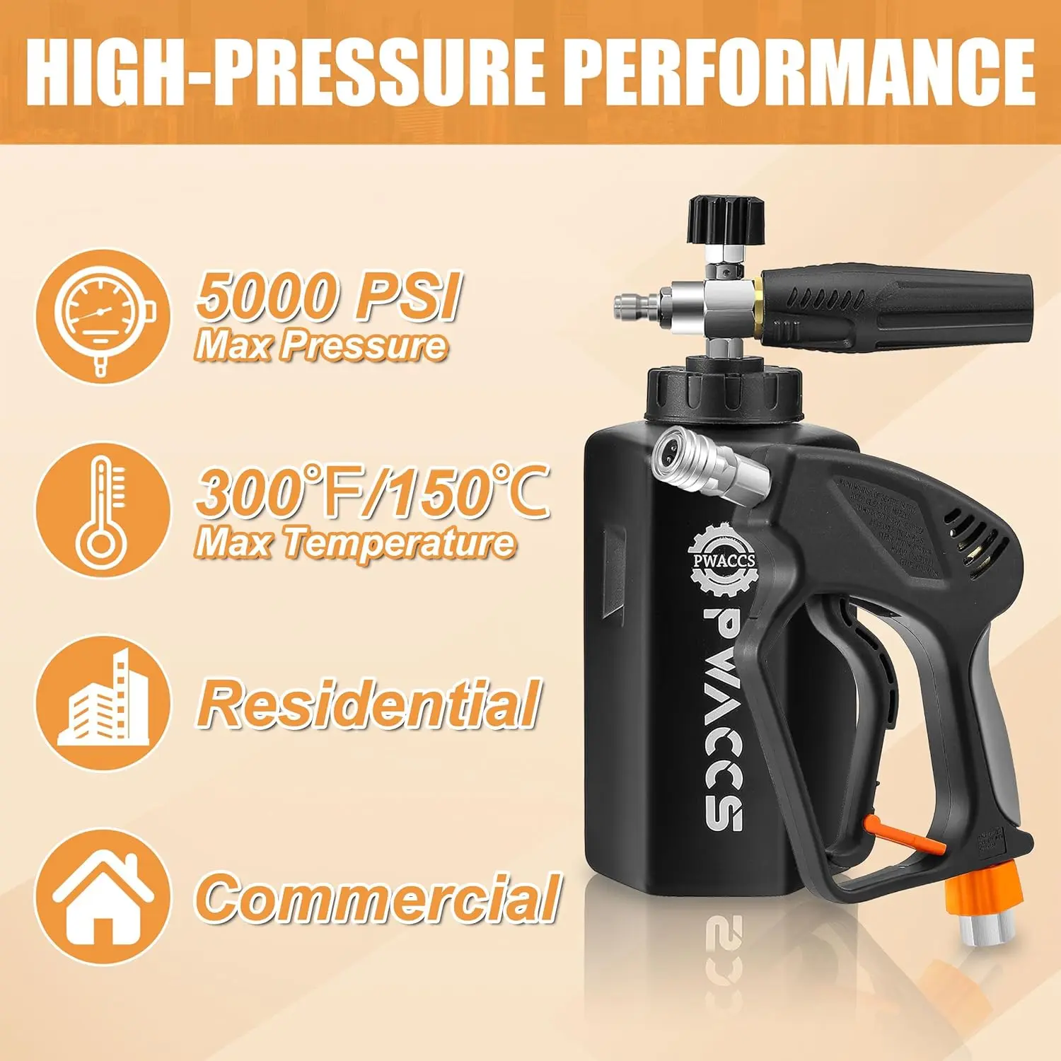·PROFESSIONAL CHOICE - Big-mouth pressure washer foam gun is perfect for cleaning cars, roofs, driveways, siding, floors, windows, trucks, and SUVs. Whether you are a professional cleaner or a homeowner looking to clean your house or car, our snow foam lance is an essential cleaning tool.