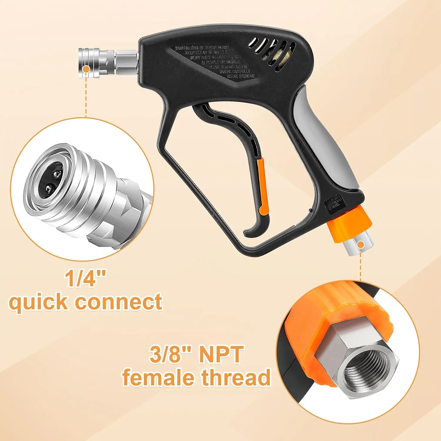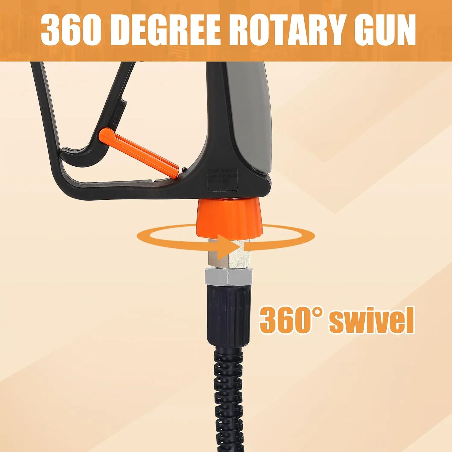 ·KINK-FREE SWIVEL - Pressure washer short gun kit is equipped with a swivel 3/8" NPT adapter that allows your pressure washer hose to rotate freely, preventing kinks and making it easier to use without wrestling with the hose, saving your time during cleaning tasks.