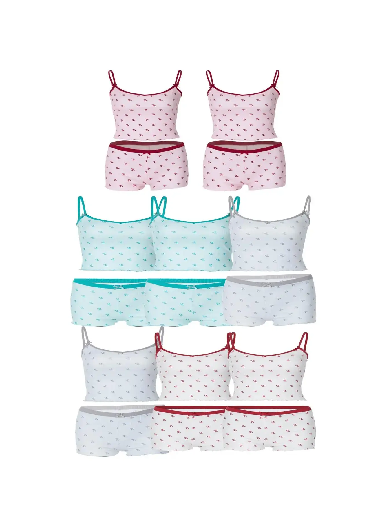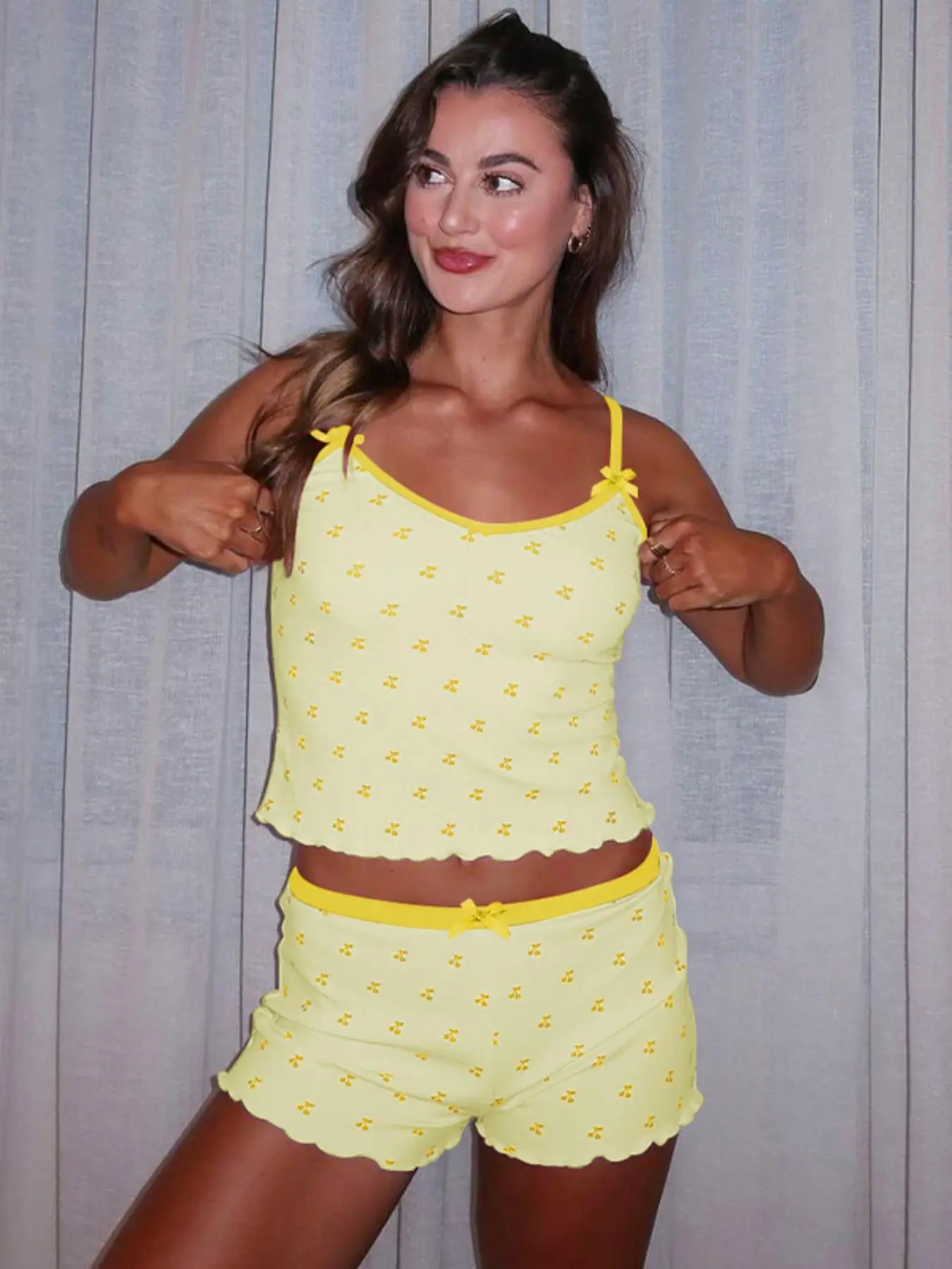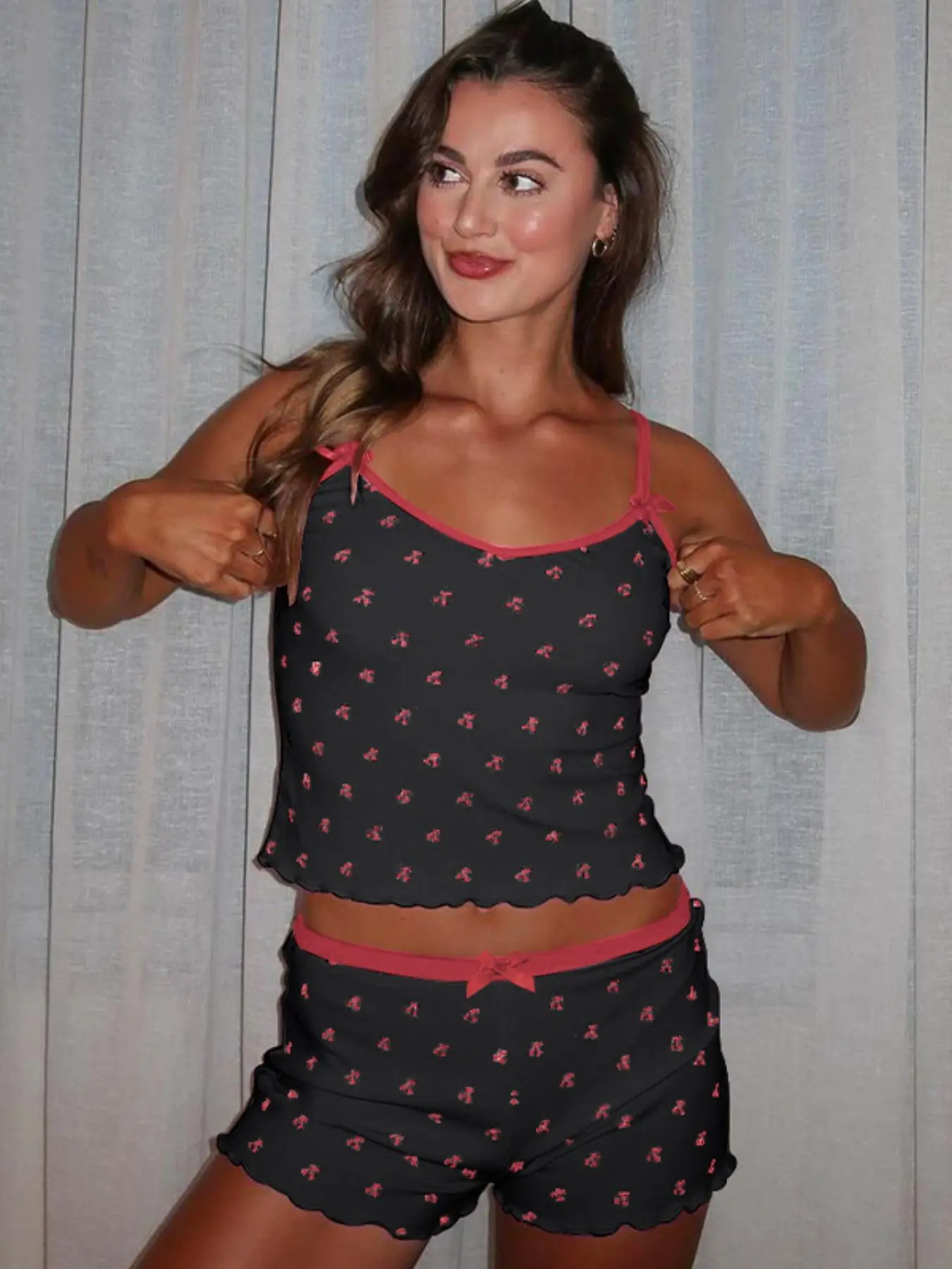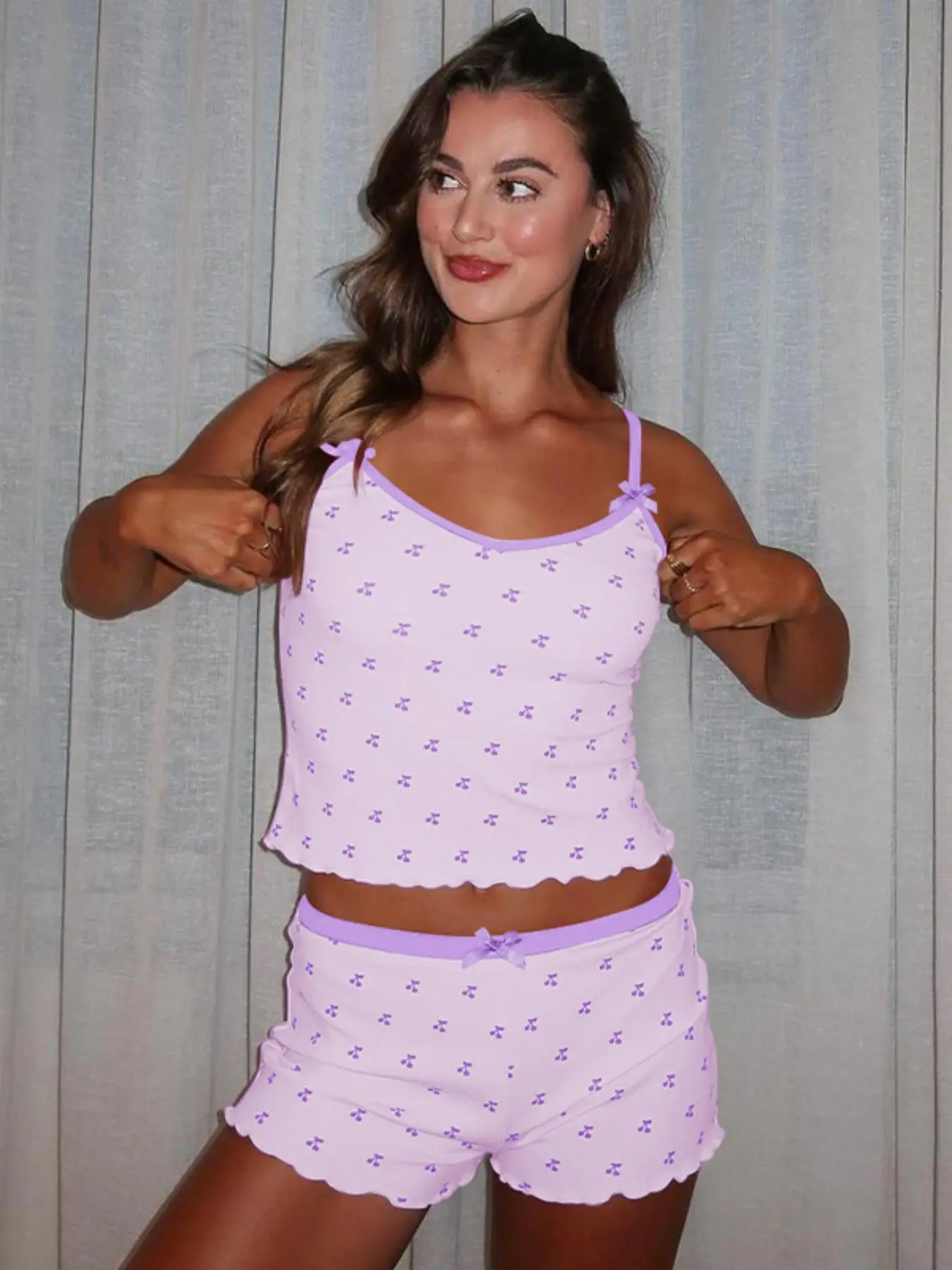 This set is true to size and so comfy! Love the pink and red combo with the cherries. Love the little bows too