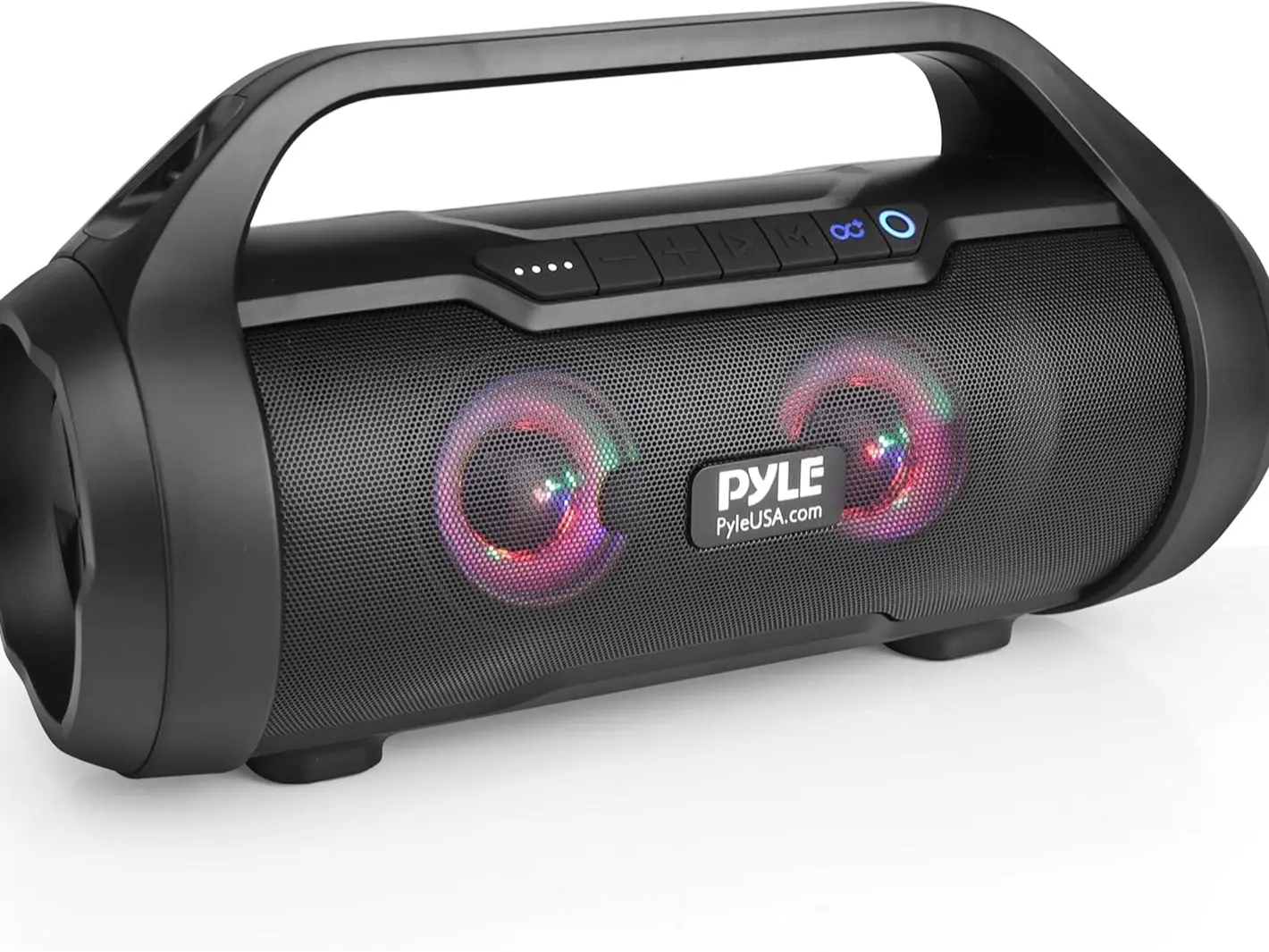·RECHARGEABLE BATTERY: Pyle boombox bluetooth speaker is great for karaoke, stage performances, & crowd control. It is equipped w/ a built-in 7. 4V Li-iOn rechargeable battery w/ 4-6 hours charge time and carry handle so you can take it anywhere you go